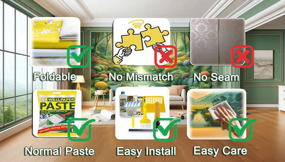 Cutting-Edge Printing Technology - Our SureColor photo-realistic printing technique sets the standard for visual excellence. - Experience full-color vibrancy and ultra-fine detail, from intricate shading to smooth gradients, for stunning, lifelike murals that enhance any space. Non-Joint, Easy Installation - Say goodbye to visible seams and installation headaches with our seamless, one-piece wall murals. - Unlike traditional multi-panel murals, our non-joint design eliminates the risk of mismatched panels and seam cracking, ensuring a flawless finish every time. - With no glue overflow to worry about, installation is a breeze, saving you time and effort while guaranteeing a professional-looking result. Environmentally Friendly Material: - Crafted from an environmentally friendly fabric specifically designed for human use, our HomeMagic Wall Murals prioritize safety and sustainability. - Free from volatile gases like formaldehyde and benzene commonly found in traditional wallpaper and wall paint, our murals ensure a healthy indoor environment. - Compliant with European interior decoration regulations, you can confidently move into your space on the same day of construction, knowing that your home is both stylish and eco-conscious. Physical Benefits - Built to withstand the test of time, our wall murals boast exceptional durability, resisting oxidation and aging to maintain their beauty for years to come. - Fire rating: Euro Classification EN 13501-01:2007-B-s2,d0 - Treated with special technology, the fiber fabric offers anti-mildew properties and excellent air permeability, preventing the growth of mold and rot while ensuring a healthy indoor environment. - Waterproof and anti-fouling features keep your walls dry and pristine, while sound insulation properties minimize echoes and provide effective noise reduction for enhanced comfort. Easy Maintenance - Enjoy effortless upkeep with our HomeMagic Wall Murals, treated with oil, stain, and waterproofing for maximum durability and convenience. - Simply wipe with a wet towel to keep your mural looking bright and tidy, saving you time and hassle on cleaning while preserving the beauty of your space. Elevate your décor with HomeMagic Non-Joint Photo Wall Murals, where style meets sustainability and functionality for a truly exceptional living experience. *Please note: due to monitor settings, colors may look slightly different. Shipping Policy Payment Method Shipping Policy * Fast Worldwide Shipping. Your order is printed on demand at our high-tech workshop, then packaged up and sent out by express courier service. Production, drying & packing takes approximately 4 working days, with a further 7 - 9 working days for your item to arrive. * Please make sure your Street Address is provided as parcels are not eligible for PO box. * Please provide a phone (or mobile) number for delivery. It is the buyer’s responsibility to provide an accurate delivery address and correct phone (or mobile) number as it is very important for the courier to ensure there is someone at home for big parcels. We are not responsible for incorrect delivery addresses or receivers when there is no one to sign the parcel, please note some couriers may charge for Storage, Re-delivery, Return, or Redirection. * International Import Charge (Customs duty, Tax) The import charges or fees are the buyer's responsibility. We'll try to help you avoid or minimize them, normally you don't need to pay a duty or tax fee. Payment Method Paypal is available upon checkout. Sale transaction (including time for the payment to be cleared) needs to be completed within 7 days from the date of email notification following the end of the sale. A final reminder message for payment will be sent before reporting the unpaid buyer to eBay. Please Note: customized wall murals are to be made to suit your wall, No refund for any Unreasonable reason,such as: Colour, Material,etc. On 08/05/2024 at 00:01:42 AEST, seller added the following information: