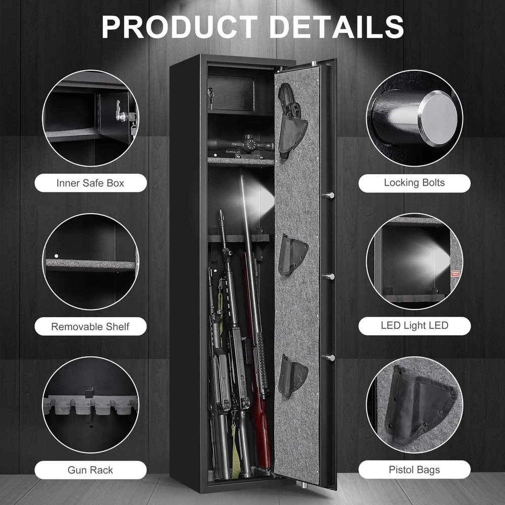 Password lock gun cabinet, can store five guns, three pistols, with internal storage box, with Magnetic introduction light - Free Shipping Specifications Free Shipping Main Color Black Main Material Steel Dangerous Goods #dangerFlag# Dimensions & Weights Assembled Length (in.) 13.78 Assembled Width (in.) 11.81 Assembled Height (in.) 57.09 Weight (lbs) 73.85 Product Features Gun cabinets are usually made of high-quality materials that are highly resistant to theft and vandalism. The size and shape of the gun cabinet is well designed to facilitate the storage of various types of firearms and ammunition. In addition, it is equipped with locks to lock the doors of the cabinet to prevent unauthorized opening. The use of gun cabinets makes it easy to manage and maintain stored firearms and ammunition, avoiding safety hazards caused by improper management. Compared to traditional suitcases or safes, gun cabinets are more environmentally friendly and energy efficient because they reduce the waste of resources and the impact on the environment. Description High performance electronic combination lock The keys are sensitive and responsive, the Steel Handle Sophisticated, durable and easy to clean holsters Cabinet door comes with 3 for 3 handguns battery pack Holds 4 batteries mobile rack Adjust shelf height as required Change Password button Press to change the password from the panel Password lock gun cabinet, can store five guns, three pistols, with internal storage box, with Magnetic introduction light - Free Shipping Specifications Free Shipping Main Color Black Main Material Steel Dangerous Goods #dangerFlag# Dimensions & Weights Assembled Length (in.) 13.78 Assembled Width (in.) 11.81 Assembled Height (in.) 57.09 Weight (lbs) 73.85 Product Features Gun cabinets are usually made of high-quality materials that are highly resistant to theft and vandalism. The size and shape of the gun cabinet is well designed to facilitate the storage of various types of firearms and ammunition. In addition, it is equipped with locks to lock the doors of the cabinet to prevent unauthorized opening. The use of gun cabinets makes it easy to manage and maintain stored firearms and ammunition, avoiding safety hazards causéd by improper management. Compared to traditional suitcases or safes, gun cabinets are more environmentally friendly and energy efficient because they reduce the waste of resources and the impact on the environment. Description High performance electronic combination lock The keys are sensitive and responsive, the Steel Handle Sophisticated, durable and easy to clean holsters Cabinet door comes with 3 for 3 handguns battery pack Holds 4 batteries mobile rack Adjust shelf height as required Change Password button Press to change the password from the panel × × × × × × × × × × × × × × × × × × × × × × × × Buy now and save! Tell a friend Visit store Watch now Postage info Click the Postage tab above the listing description for more info FREE Postage Click the Postage tab above the listing description for more info! Additional delivery notes PICK UP OPTION Sorry, our items are NOT available for pick-up. PAYING VIA PAYPAL We accept PayPal on our all our items so you can shop with confidence. Simple choose the PayPal option when proceeding through the checkout. Additional Information No additional information at this time Ask seller a question You might also like 12 Carat Moissanite Platinum-Plated Drop Earrings Luggage Sets 3 Piece(20/24/28), Expandable Carry On Luggage with TSA Lock Airlin Judy Blue Full Size High Waist Distressed Straight Jeans - Free Shipping Nightstand LED Bedside Table Cabinet Lights Modern End Side with 2 Drawers for B Contact To contact our Customer Service Team, simply click the button here and our Customer Service team will be happy to assist. Ask seller a question © Aurelia Clothing Postage Shipping is FREE for this item Payment Accepted Payment Methods PayPal Returns Returns are accepted Items must be returned within 30 days of the auction ending Buyer will pay for return shipping. eBay integration by