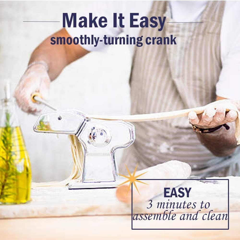 Store New Arrivals Add to Favorite View Feedback Contact Pasta Maker Machine, 180 Roller Pasta Maker, 9 Adjustable Thickness Settings 2-In-1 Noodles Maker with Rollers and Cutter, Perfect for Spaghetti, Fettuccini, Lasagna or Dumpling Skin Silver Description Item model number Machine1 Included Components Pasta Maker Machine, Clamp, English Manual Material Stainless Steel, Aluminum Country of Origin China Is Dishwasher Safe No Is Electric No Number of settings 7 Item Weight 5.46 pounds Operation Mode Manual Blade Material Aluminum Number of Blades 1 Is Discontinued By Manufacturer No Product Dimensions 11.81"L x 7.09"W x 9.45"H 【FOODS GRADE MATERIAL & CLEANING METHOD】 Tired of those pasta machines that smell of metal or plastic? Sailnovo pasta machine is made of food-grade material, The blade attachment of this pasta maker machine shouldn’t be washed in water or put in the dishwasher. Residual moisture will affect the sharpness of the blade and shorten machine's lifespan. We suggest using a brush or wooden stick, or if you don't have one you can use a toothpick to remove any residual dough. 【9 ADJUSTABLE THICKNESS SETTINGS】Pasta Maker customized adjustment knob with 9 thickness dough roller settings allows you to choose the thickness at will, the thickest can reach 3 mm; through this simple adjustment to change the texture and taste of the pasta. You can also get dumpling skins as thin as 0.5mm by continuously pressing the thickness of the dough, making it easy to show your family and friends how good you are at cooking! 【DIFFERENT WIDTH SETTINGS SUIT VARIOUS PASTA】Choose different pasta with your mood at this moment! A specific cutting machine makes the pasta slices can be cut into two widths-2.0 or 4.5 mm; very suitable for making spaghetti, lasagna, etc. A pasta roller and cutter can satisfy all your pasta-making needs. 【PERFECT GIFT FOR FRIENDS】Manual Pasta Maker is very suitable as a gift for friends. Making fresh pasta is a very rewarding activity. Both the elderly and children can easily use it. It is purely manual, clean & hygienic. The Sailnovo pasta machine is definitely an essential kitchen tool or a perfect gift for your friend who likes to eat pasta. 【CUSTOMER SERVICE & QUALITY GUARANTEEE】Sailnovo pasta noodle maker is supplied with an English manual. We recommend you read the instructions before making the pasta, if you have any questions please , we will be happy to answer your questions. Product Description Sailnovo Pasta Maker Machine with 9 Adjustable Thickness Settings ranging from (0.01 to 0.1 inches) 1 9 Thickness Settings 2 More Thinner High-quality Aluminum Alloy - 2 Adjustable Width Settings The video showcases the product in use. The video guides you through product setup. The video compares multiple products. The video shows the product being unpacked. Authentic Homemade Pasta How to make delicious pasta? 1.Prepare the dough:5 eggs and 3 cups of flour for 3 servings. Completely mix them with water for consistency, knead the dough and cut it into segments . 2.Secure the machine:Firmly attach the machine with the table clamp to a table or kitchen surface 3.Roll out dough slices:Roll dough slices using the highest thickness setting. Steadily tighten the roller for your desired thickness. 4.Cut pasta sheets:Use pasta blades to get thin or wide pasta, suiting your dish you want to make. Tips for First Time Use 1. First-time cleaning: Before using your pasta maker for the first time, run a small piece of dough through it. This helps remove any tiny particles left from manufacturing or shipping. 2. Dry run" cleaning: Run the pasta maker for 2-3 minutes without any dough. 3. Final wipe-down: After the dry run, wipe all parts with a clean, dry cloth. This ensures no particles are left behind. Enjoy Delicious Food with Your Family A Variety of Delicious Pasta Fixed Table Clamp When using a fixed table clamp, please ensure that the bottom of the product and the bottom of the table clamp do not exceed the edge of the table, and tighten the knob so that the product can be better fixed and will not move during use. Different Styles for You Add to Cart Add to Cart Add to Cart Customer Reviews 4.3 out of 5 stars 2,445 4.5 out of 5 stars 167 4.3 out of 5 stars 2,445 4.2 out of 5 stars 19 Price $39.09 $ 39 . 09 $49.99 $ 49 . 99 $39.09 $ 39 . 09 — Thickness Settings 9 Adjustable 9 Adjustable 9 Adjustable 7 Adjustable Thickness Range 0.5-3mm(0.02-0.12in) 0.5-3mm(0.02-0.12in) 0.5-3mm(0.02-0.12in) 0.5-3mm(0.02-0.12in) Adjustable Width Settings 2 Width Settings 2 Width Settings 2 Width Settings 2 Width Settings Width Range 2-6.25mm(0.07-0.24in) 2-6.25mm(0.07-0.24in) 2-4.5mm(0.07-0.15in) 2-4.5mm(0.07-0.15in) Rollers and Cutter Material Aluminum Alloy Aluminum Alloy Stainless Steel Stainless Steel Table Clamp ✔ ✔ ✔ ✔ Spaghetti ✔ ✔ ✔ ✔ Fettuccini ✔ ✔ ✔ ✔ Lasagna ✔ ✔ ✔ ✔ Dumpling Skin ✔ ✔ ✔ ✔ Noodle ✔ ✔ ✔ ✔ ABOUT US We offer the best prices around on high quality products. Our E-store includes media such as books, movies, music and games while offering electronics, toys, sporting apparel, clothing, tools, general home, garden items and more. SHIPPING We are always working hard to ensure your package arrives as soon as possible. Please understand that some factors like weather, high postal traffic, and the performance of shipping companies are outside of our control. We offer free shipping to the lower 48 states and ship within 2 business days of payment, usually sooner. We do not accept P.O. Boxes. Please provide a physical address. For shipping outside of the continental USA, we only use eBay's Global Shipping Program.The item is shipped to KY and then sent to the rest of the world. International customers are responsible for all duties and taxes. Continue to check out in order to calculate costs for shipping the item to your country. Messages regarding eBay's Global Shipping Program MUST be directed at eBay EXCLUSIVE