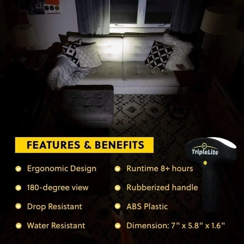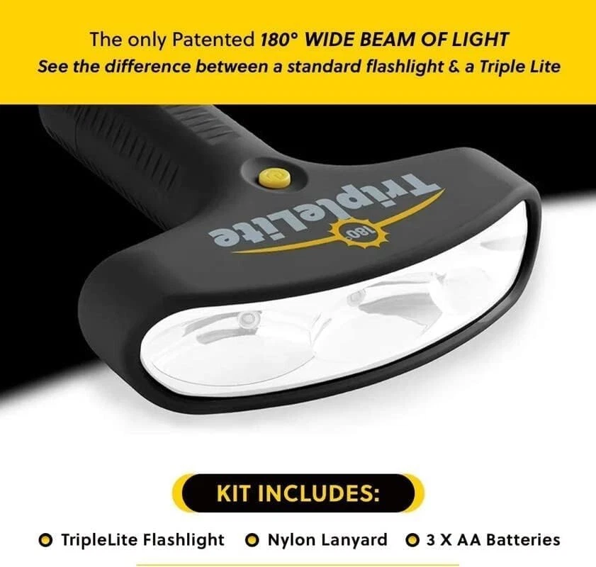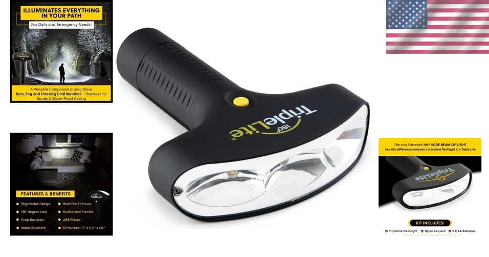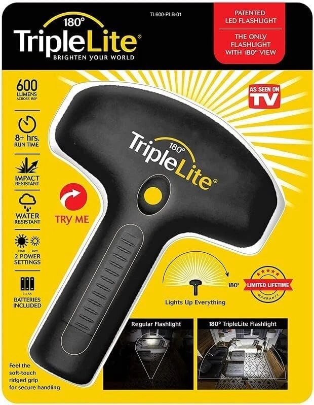 Patented 180 Degree LED Flashlight with Alkaline Battery - Emergency Ready ‹ › ‹ › ‹ › ‹ › ‹ › ‹ › ‹ › ‹ › ‹ › Patented 180 Degree LED Flashlight -Emergency Ready Key Features: Water Resistant & Drop Resistant: Designed for all weather conditions, the flashlight's rubberized body ensures that rain and snow simply roll right off, providing you reliability in critical situations. Super Bright 180 Degree Wide Beam: Experience unmatched illumination with our patented 180-degree wide beam that effortlessly lights up an entire room or backyard. This flashlight is a staggering 20 times brighter than traditional incandescent lights. Ideal for Various Activities: Whether you’re camping, fishing, taking your dog for a walk, or just around the house, this flashlight is your perfect companion. Ready to Use: Each packaging contains 1 Triple Lite Master T Flashlight along with 3 AA batteries, so you can switch it on right out of the box. As Seen on TV: This product has been featured on popular platforms including QVC and Good Morning America, adding to its credibility and appeal. Benefits: Robust and durable, perfect for outdoor enthusiasts. A bright solution to ensure safety in dark environments. Versatile for both emergency situations and everyday use. Convenient packaging ensures you're always prepared. Why Choose Our 180 Degree LED Flashlight? Don’t settle for dim, unreliable light sources when you can elevate your visibility with our state-of-the-art 180 Degree LED Flashlight. Not only is it incredibly bright and versatile, but its durable, water-resistant design means it can withstand the elements while you illuminate your adventures. Whether you need it for emergency readiness or everyday tasks, this flashlight combines practicality with innovative technology. Light up your world—order your Patented 180 Degree LED Flashlight today and experience the brilliance for yourself! Shipping Free & Fast Shipping - We offer free shipping to most of the USA with a normal delivery time of 3-7 days. However, due to the current situation, additional delivery time (up to 3 weeks) may be required for some items. Alternative Carriers - We may use alternative carriers (e.g. USPS, FedEx, UPS, etc.) to ensure your package arrives safely and on time. Due to the use of multiple carriers, we are unable to provide a tracking number automatically. Handling Time - Orders are processed and shipped within 1-2 business days of receiving cleared payment. Shipping Restrictions - Shipping to Alaska, Hawaii, Puerto Rico, Guam, and other US territories may incur shipping charges or delivery restrictions. Please contact us before ordering, or your order can be refunded/cancelled. State Restrictions - There may be restrictions based on your state of purchase. For example, certain items may not be shipped to California due to state regulations. Contact for Tracking Updates - If you require tracking updates or have any concerns about the delivery of your order, please feel free to contact us, and we will be happy to assist you. Return 30-Day Hassle-Free Returns - We want you to be completely satisfied with your purchase. If you are not, you can return the item within 30 days of receiving it for a full refund or exchange. Easy Return Process - To start a return, simply contact us and we will provide you with a prepaid return shipping label and detailed instructions. Restocking Fee - There are no restocking fees for returns. However, the buyer is responsible for return shipping costs if the return is not due to a seller's error. Refund Processing Time - Refunds will be processed within 5 business days of receiving the returned item in its original condition. Payment We accept all major credit cards, PayPal, and Apple Pay for your convenience. Your payment information is secure and encrypted to ensure a safe and seamless transaction. Please complete your payment within 3 days of purchase to avoid any delays in shipping. Feedback Your feedback is extremely important to us. We strive to provide the best products and customer service possible. If you are satisfied with your purchase, please take a moment to leave us a positive review. If you have any concerns or issues with your order, please contact us before leaving negative feedback. We are committed to resolving any problems and ensuring your satisfaction. Contact Us If you have any questions or concerns, please feel free to reach out to our customer support team. You can contact us through the eBay messaging system. We are available Monday to Friday, 9:00 am to 5:00 pm EST, and we will do our best to respond to your inquiry within 24 hours. Thank you for supporting our small family business! UPC: Not Set Voltage: 4.5 volts Item Height: LED Flashlight Item Length: LED Flashlight Item Weight: 11.46 ounces Item Width: Not Set Model: Not Set Lumens: 600 lumens Number of LEDs: Not specified Unit Quantity: 1 Features: Rechargeable,Water Resistant,Drop Resistant,Super Bright,Wide Beam,Patented Design,Includes Batteries Material: ABS,Rubberized Body Brand: Unbranded Type: Flashlight Lighting Technology: LED Power Source: Battery Operating Range: Not specified MPN: Not Set Battery Technology: AA Number of Batteries: 3 Color: Black Country/Region of Manufacture: Not Set IP Rating: Not specified Operating Time: Not specified Number of Lights: Not specified Unit Type: oz Personalize: Not Set