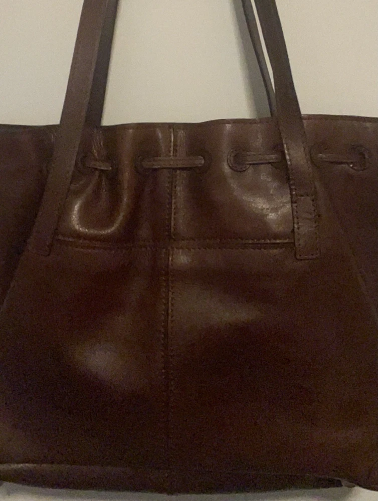 This beautiful Patricia Nash tote bag is perfect for any occasion. The drawstring closure and double handles make it easy to carry, while the tassel accents and gold hardware add a touch of elegance. The bag is made of high-quality brown leather and lined with soft suede, providing ample protection for your belongings. With a spacious interior measuring 16 inches in width, 11 inches in height, and 5 inches in depth, this large tote bag is ideal for travel, parties, workwear, and more. The bag also comes with a charming bag charm accessory and a durable leather handle/strap material. Get your hands on this classic and timeless piece from Patricia Nash's 10th anniversary collection today.