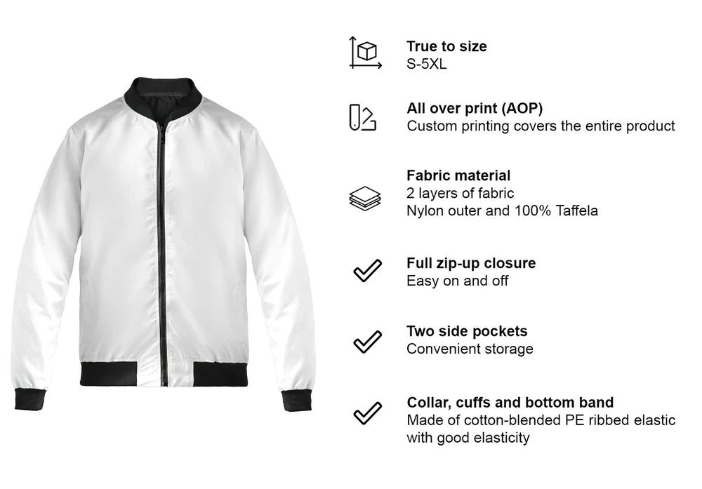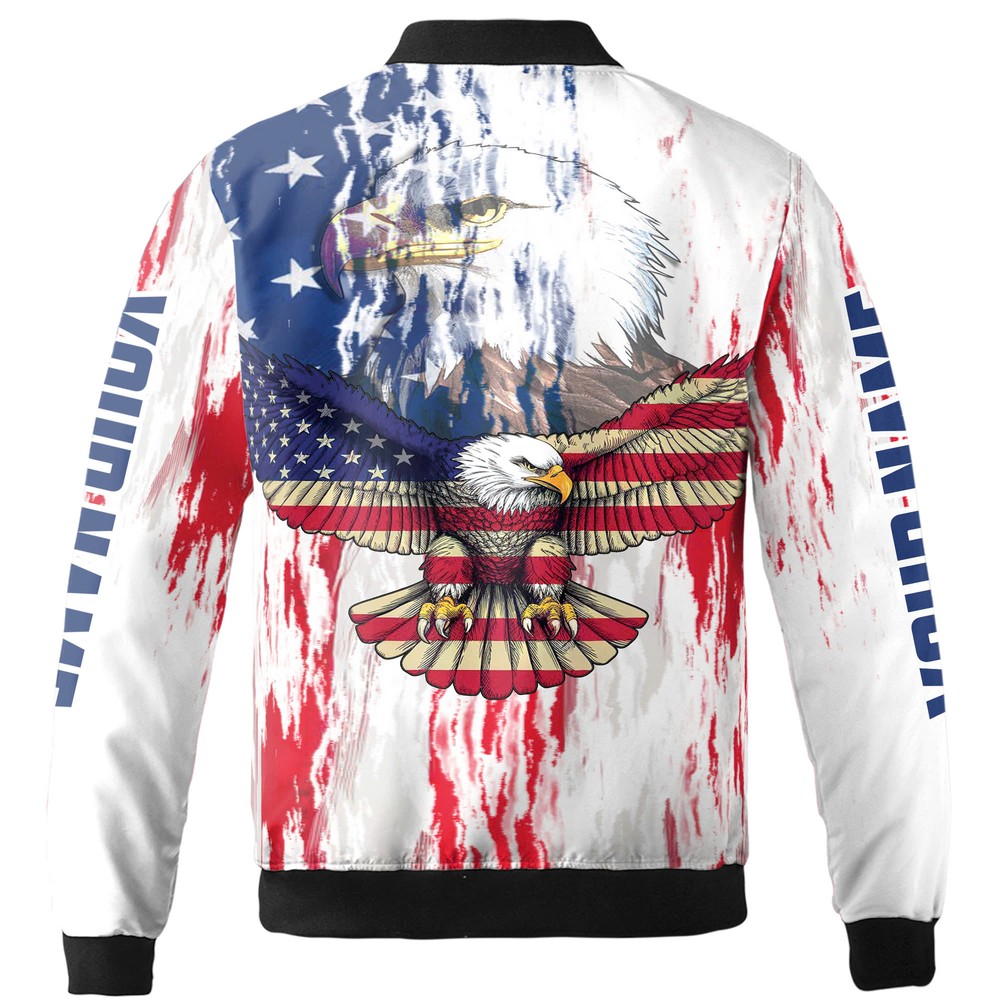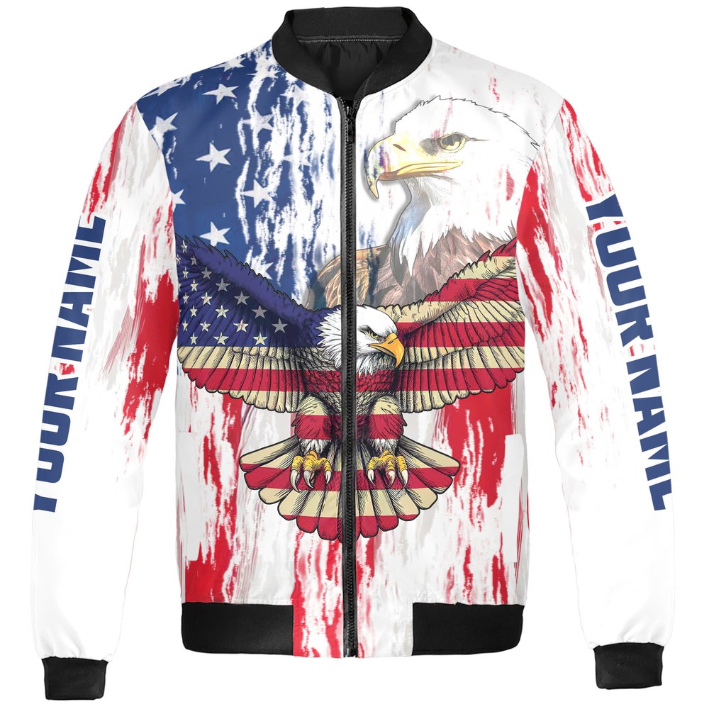 Personalized Patriotic America Eagle Bomber Jacket , US Flag Bald Eagle Graphic America Eagle Jacket US Flag Bomber Patriotic Bomber Jacket Bald Eagle Outerwear Custom Name Bomber Men's Casual Jacket Freedom Theme Jacket Stylish Eagle Bomber Lightweight Windbreaker Zip-Up Bomber Jacket Vintage US Jacket Streetwear Bomber Eagle Graphic Jacket Classic America Jacket Fall Winter Bomber * Product Details: Custom AOP Bomber Jacket is made with two layers of fabric for complete cover against the cold weather. The collar and cuffs of the bomber jackets are made of cotton-blended PE ribbed elastic with good elasticity, giving form and structure to this jacket. - Material: 2 layers of fabric – Nylon outer and 100% Taffeta polyester lining. - Elastic ribbed cuff, collar, and bottom band. - Full zip-up closure for easy on and off. - Two side pockets for convenient storage. Our bomber jacket is classic winter wear that is easy to mix and match. Depending on the weather, you can layer this jacket with items like T-shirts or hoodies. * Processing and handling time: This is Print on Demand (PoD) product, it will take 1 – 5 working days for production. Items which have QC problems may need more time for production. * Shipping/ Transit time: Domestic order is expected to deliver within 5-10 business days. International order is expected to arrive within 7-15 working days. Depending on product type. * Cancellation: We can only accept the cancellation if item is still in processing stage. We have no way to hold item once it is in production stage. Normally items will be moved to production 1 day after purchasing. * Refund/ replacement/ return policy: Please contact us within 30 days after receiving item for any question. Basically, we are not able to offer refund/ return/ replacement due to wrong selection of color, size, changing mind, second thought. Thank you for shopping with us! Listing and template services provided by inkFrog