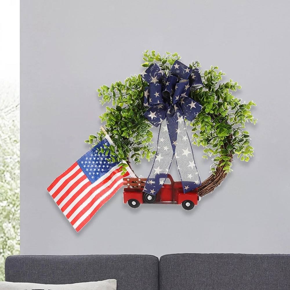 This festive wreath is absolutely stunning! The vibrant red, white, and blue colors pop, and the added flag, truck sign, and bow give it such a patriotic flair. It’s well-made with durable polyester and plastic, so it’ll last for many Fourth of July celebrations. Perfect for sprucing up your front door, fireplace, or office—definitely a must-have for the holiday!