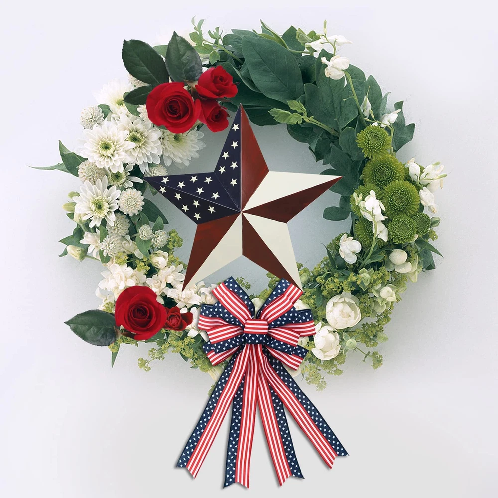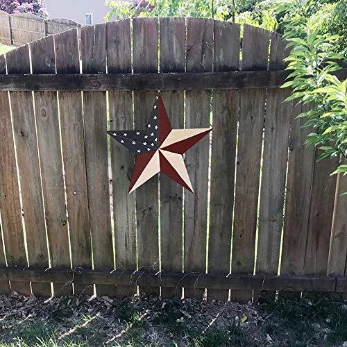 Star barn decoration for 4th of July, nice ornament wall decor to show your love, patriotism and support for America. Barn Stars are a classic country accent for primitive homes and it is originally a good luck symbol for American farmers. Cute patriotic-themed decor item, rustic appearance, nice weight of metal, not too heavy but strong enough to resist denting or crushing and can put your American pride proudly on display. Made with durable metal with a distressed Americana finish Easy to hang with Pre-drilled hole, no-tool assembly required Great patriotic addition to your house, porch, garden or farmhouse. Can also be used as party favors in kid's birthday parties, patriotic events, election parties, military homecomings, Veteran's Day, Independence Day and christmas party decor. Patriotic Barn Star - This metal star decor is hand painted in country/American style to show American spirit and heritage. American flag-themed star barn will go well with your other patriotic decorations Outdoor Wall Hanging Barn Star- Measure 12*12*1inch, big enough to see from the street. Nice outdoor decoration for hanging on front door, front porch, back yard, garage, deck, side of house Easy to Hang - Metal barn star wall decor, pre-drilled hole for easy hanging. Look great attached to the fence or on the wall Durable & Sturdy - This Americana wall decor barn is made of metal with antique finish. Suitable for indoor outdoor country primitive wall décor. Great patriotic decoration for July 4th, Memorial Day, Flag Day, Labor Day, kid's birthday parties, patriotic events, election parties, military homecomings, Veteran's Day