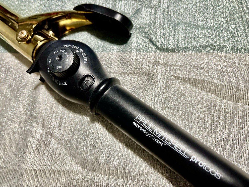 The Paul Mitchell Protools Express Gold Curl titanium curling Iron is a premium hairstyling device designed for women with all hair types. Made with a sleek gold plastic barrel and featuring titanium heating plates, this curling iron operates at a maximum temperature of 430 °F with adjustable heat settings for customizable styling. Its travel size makes it convenient for on-the-go use, and it comes with a 1-year manufacturer warranty for added peace of mind. With its 120W power source and reliable brand reputation, the Paul Mitchell Protools Express Gold Curl titanium curling Iron is a high-quality tool for achieving beautiful curls and Waves.