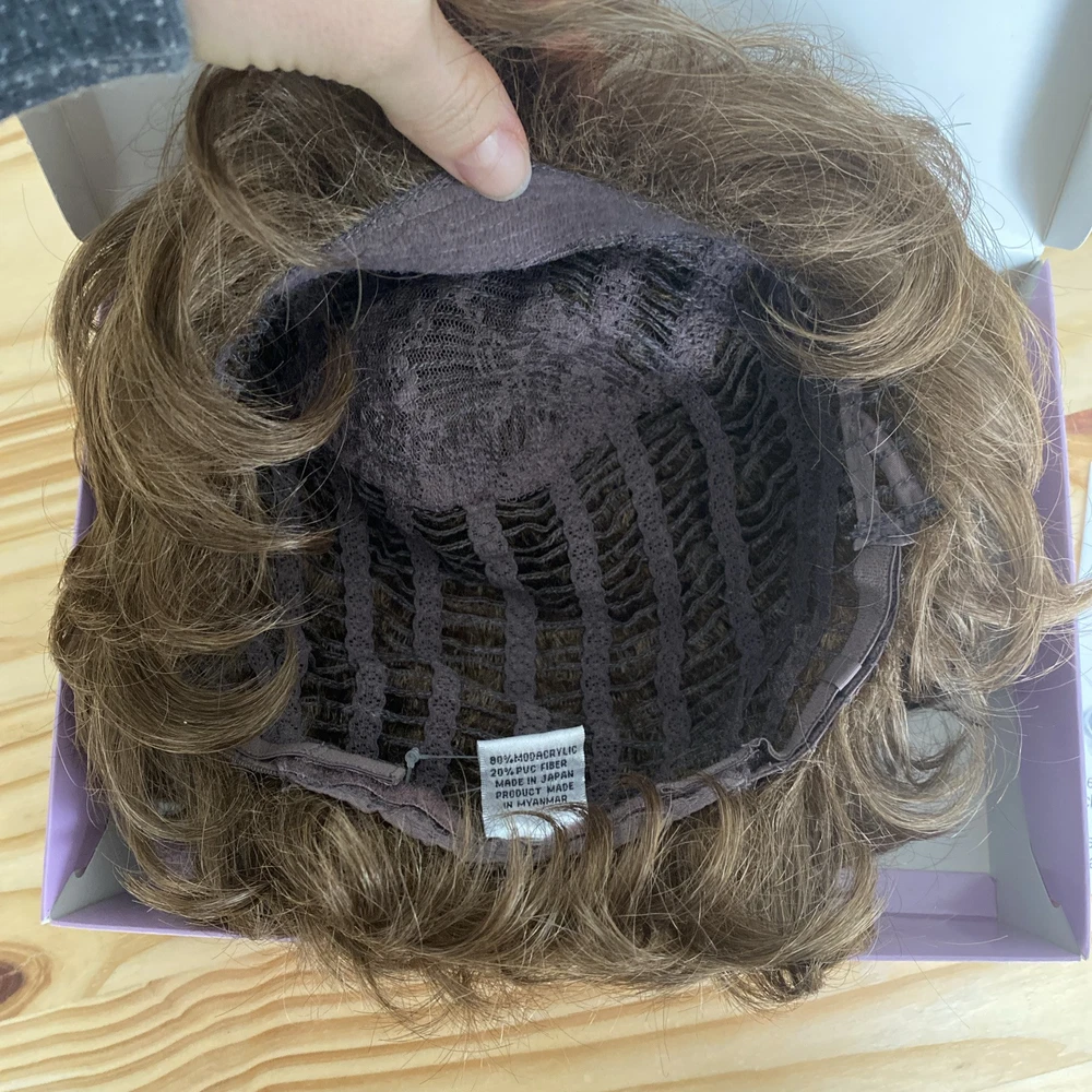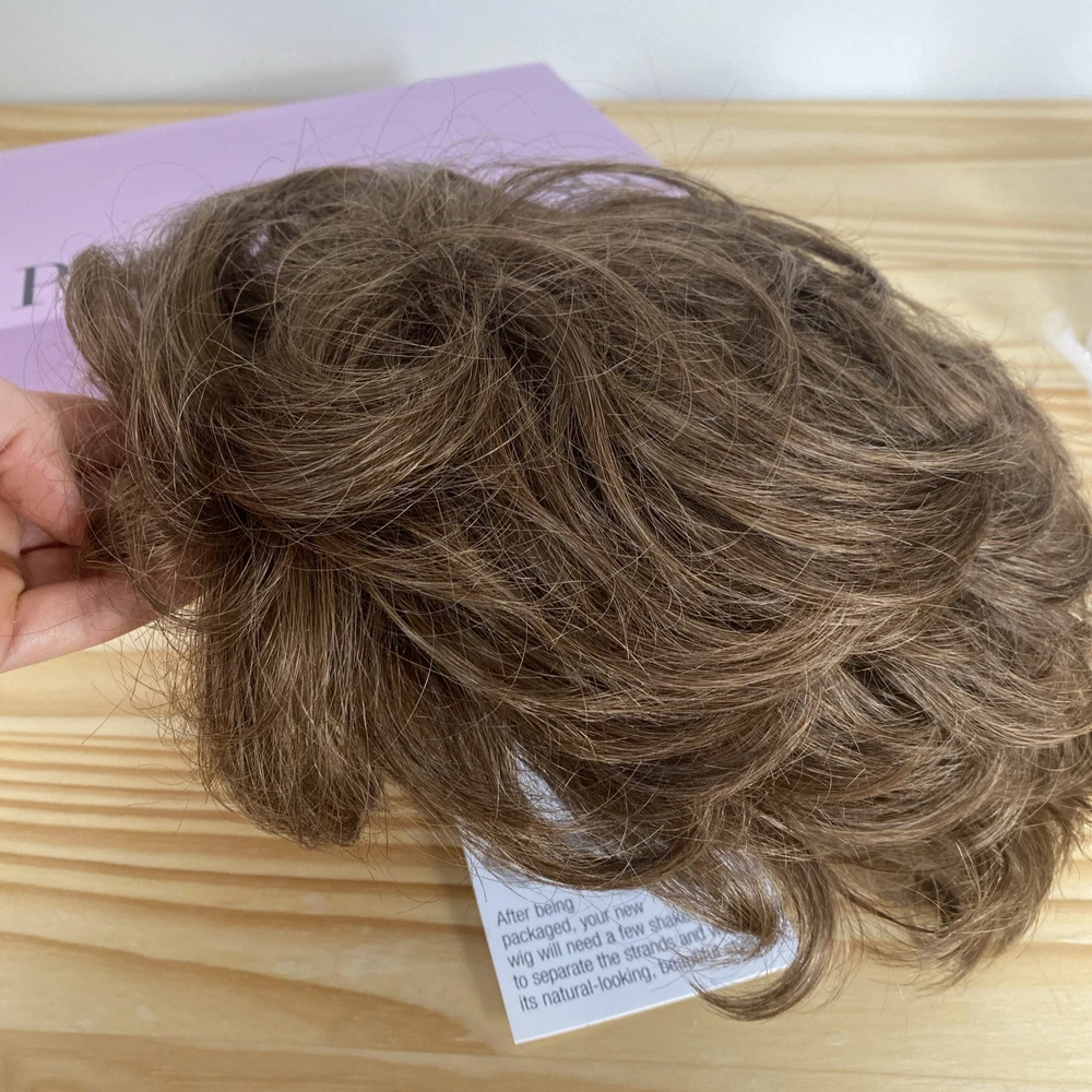 This Paula Young Wig A2070 DANCE-Petite in color 12 Medium Brown is designed for women, teens, and adults with a small cap size. The wig features a classic cap construction with straight, layered WhisperLite Fiber synthetic hair that falls at a shorter length, creating an average size overall look. The wig is styled in a fashionable manner and is ideal for those seeking a stylish and manageable hairpiece.