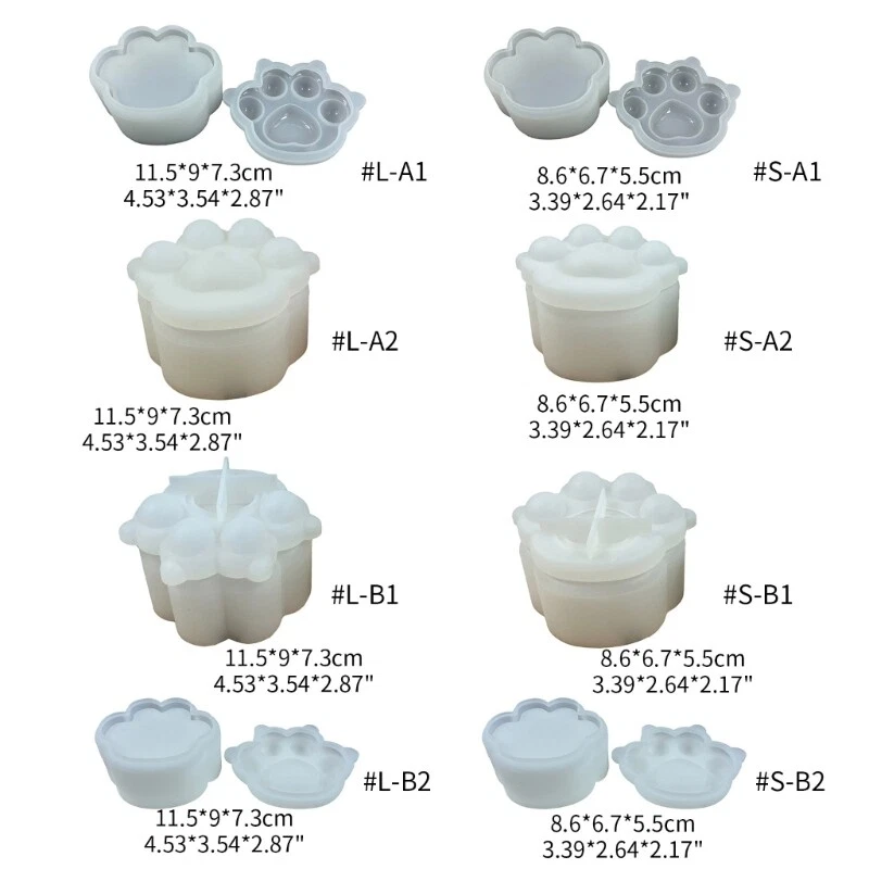 Features: Unique and adorable, this set of love paw storage box molds is designed to catch people's attention. Perfect for DIY enthusiasts who enjoy creating personalized Made from grade silicone material, these molds are safe to use and can withstand high temperatures. Their soft and durable characteristics make it easy to remove the finished products without tearing or wearing out. Great for handcraft lovers and DIY enthusiasts, these molds allow to unleash their creativity and make customized storage boxes or other handicrafts. Whether displayed at home, in or at a handicraft market, the unique and exquisite love paw storage boxes using these molds will add a touch of charm to any setting. Not only perfect for organizing small items like keys and jewelry at home, but also a great gift choice for family, or colleagues who appreciate handmade and items. Specifications: Material: Silicone Mirror Heart/Frosted Heart/Mirror Flowing Sand/Frosted Flowing Sand S size: 8.6x6.7x5.5cm/3.38x2.64x2.16inch L size: 11.5x9x7.3cm/4.53x3.54x2.87inch Package Includes: 1set Silicone Mold note: Please allow 1-2cm errors due to manual measurement, make sure that you do not mind before you order. Due to the difference between different monitors, the picture may not reflect the actual color of the item.