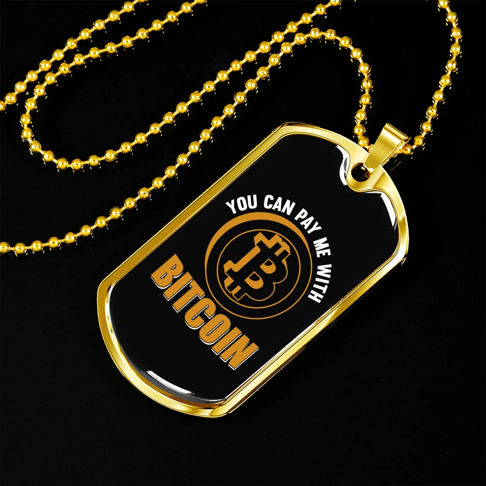 Pay Me With Necklace Stainless Steel or 18k Gold Dog Tag 24" Ch
