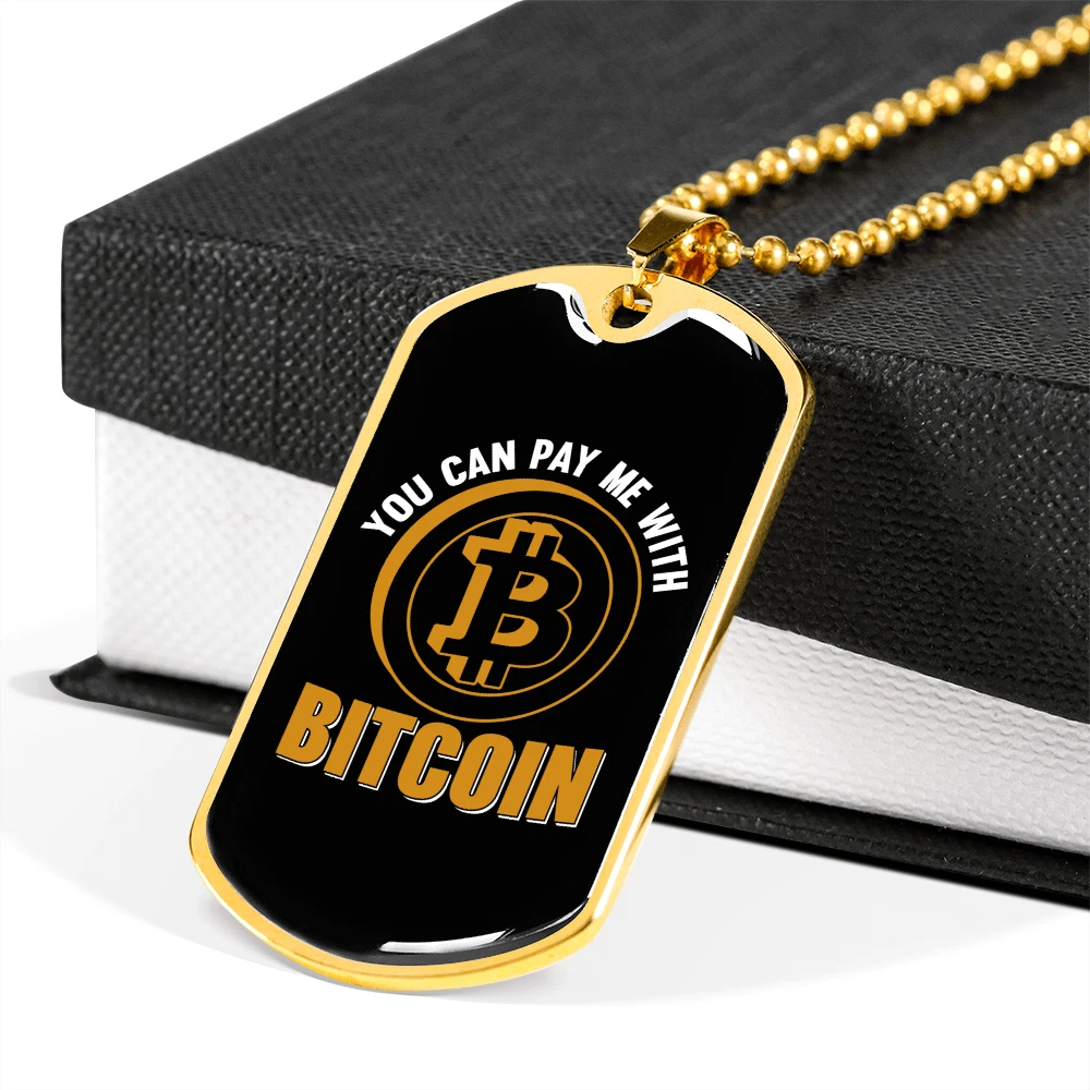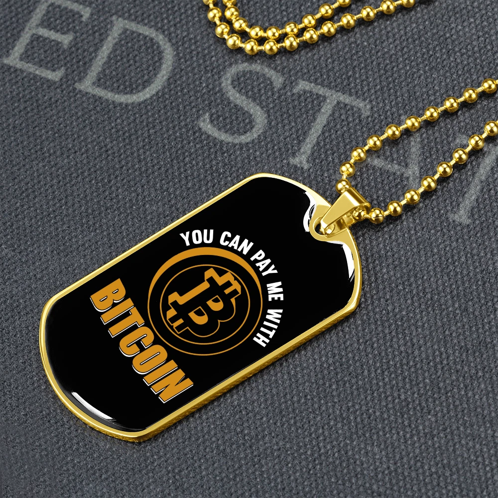 Pay Me With Necklace Stainless Steel or 18k Gold Dog Tag 24" Cha