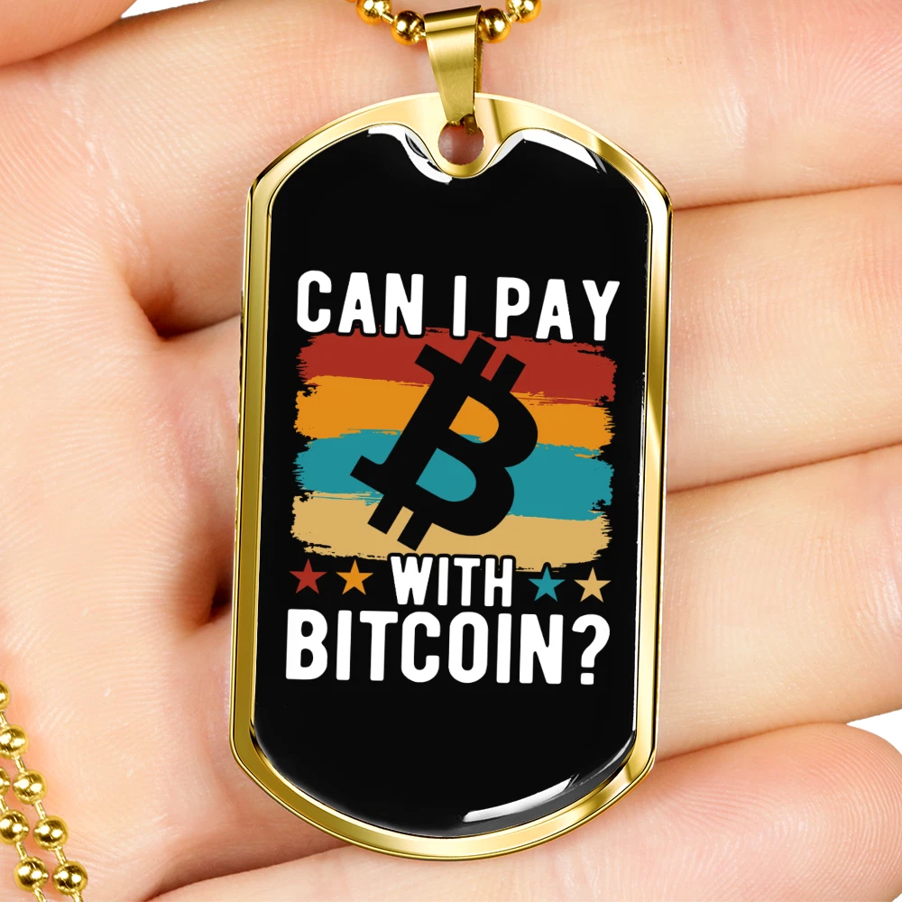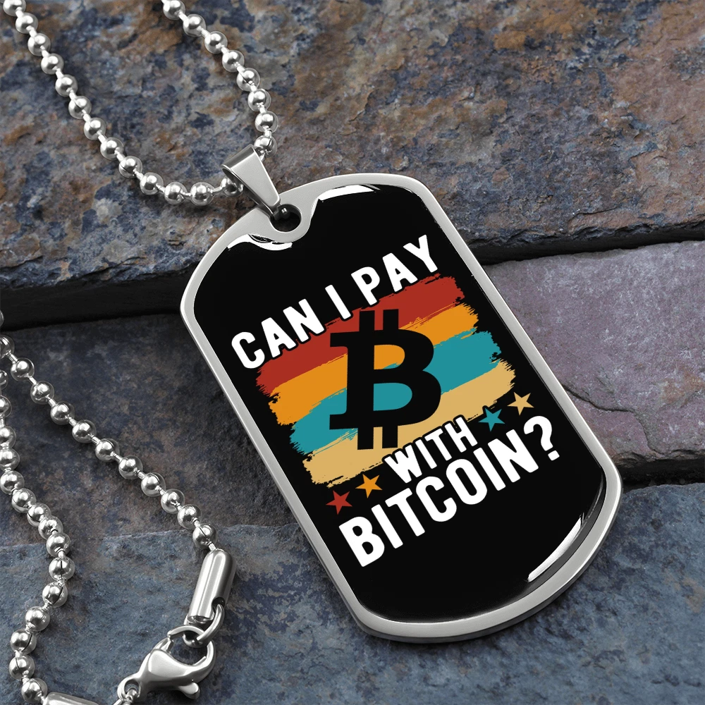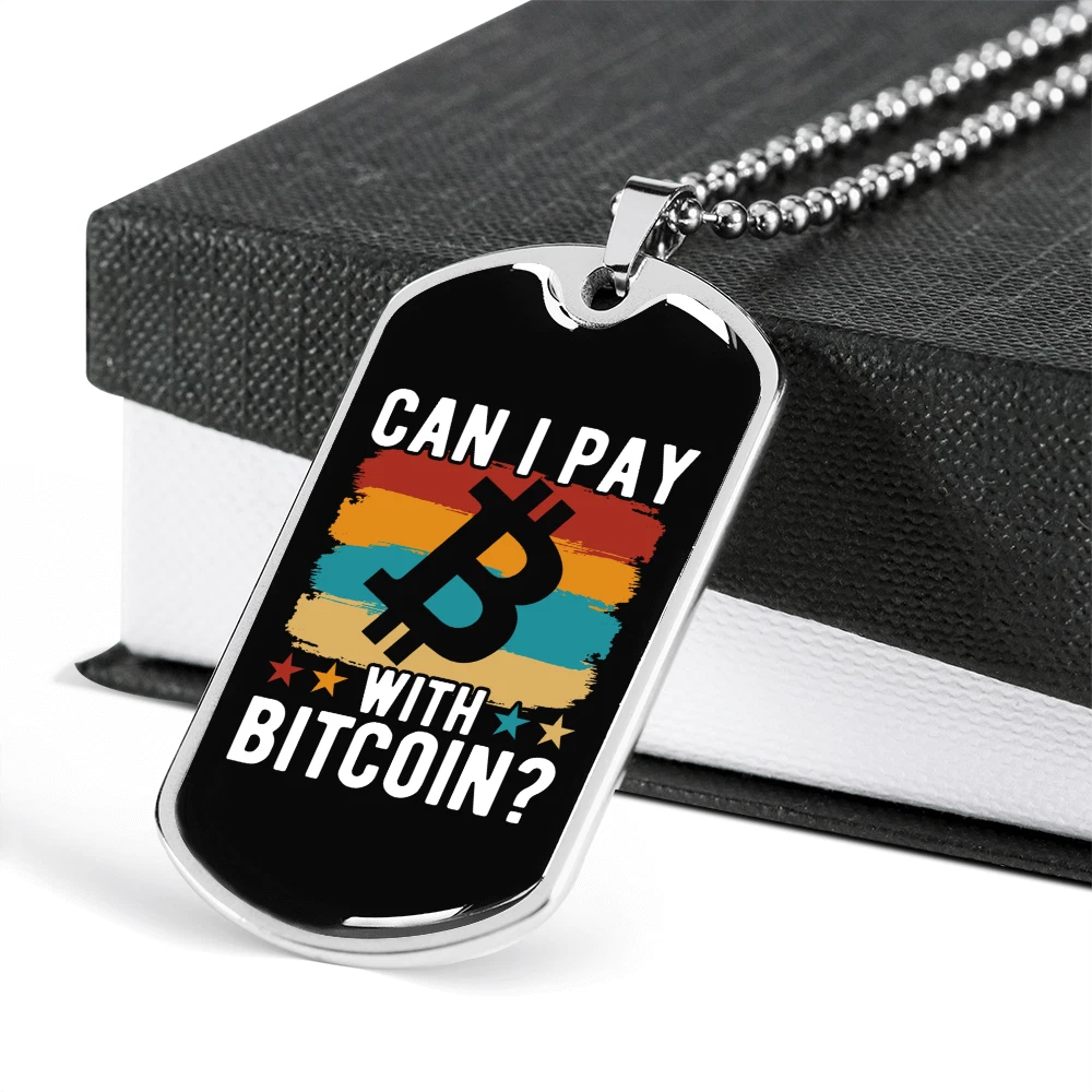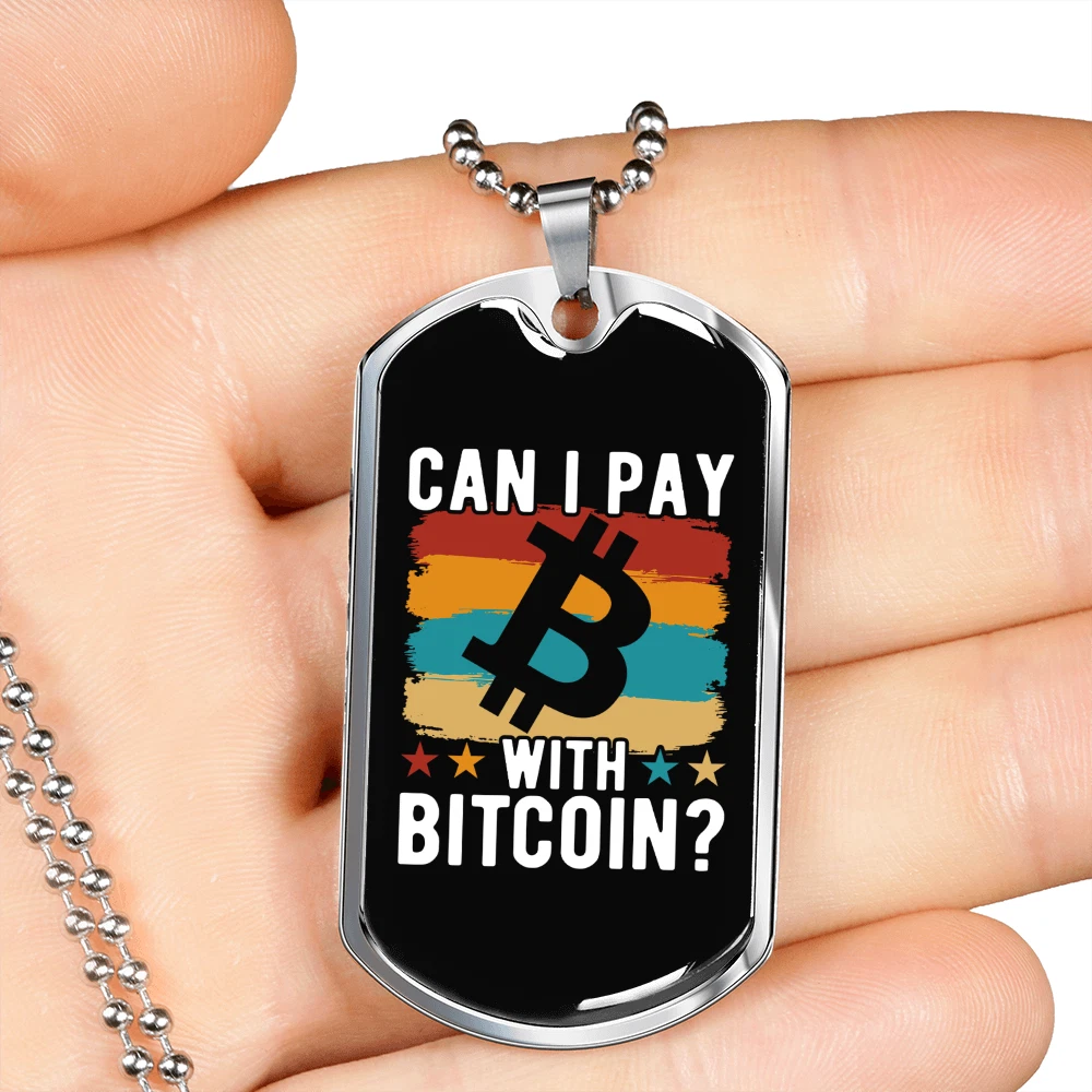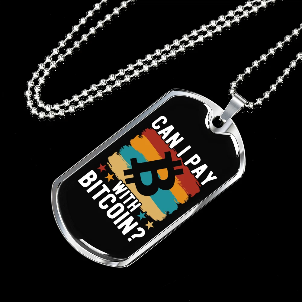 Pendant Shape: Dog Tag Theme: Bitcoin, Crypto, Blockchain Personalize: Yes Base Metal: Stainless Steel Type: Pendant Chain Type: Ball Color: Multi Color Brand: Express Your Love Gifts Features: Adjustable Pendant/Locket Type: Dog Tag Metal: Surgical Steel Main Stone: None Closure: Lobster Clasp Customized: Yes Necklace Length: 24" Material: Glass Country/Region of Manufacture: United States MPN: 6944317505624