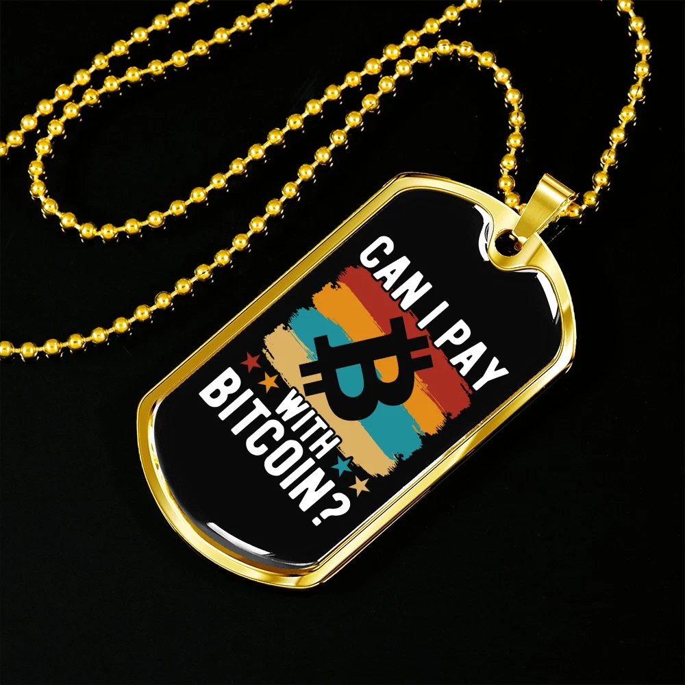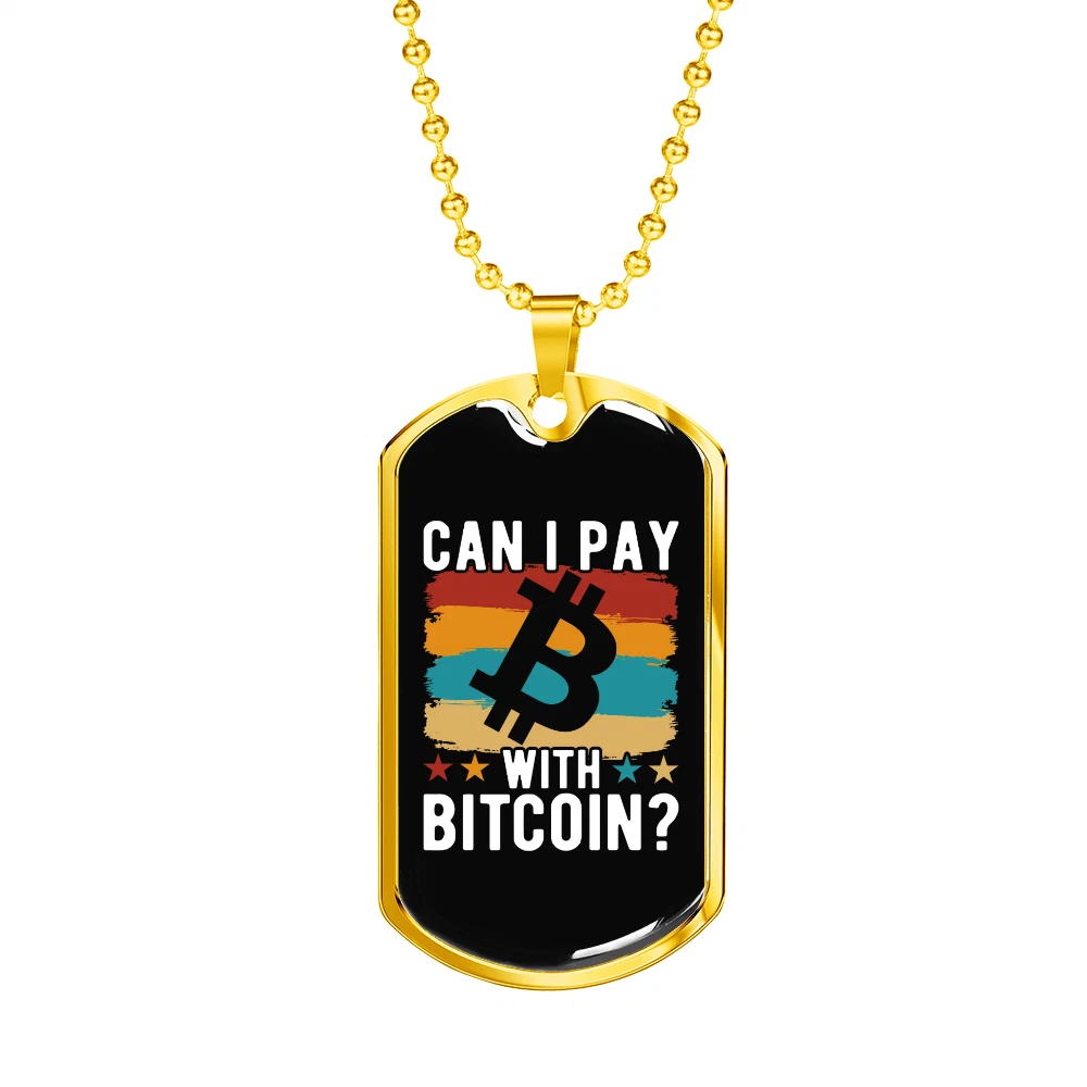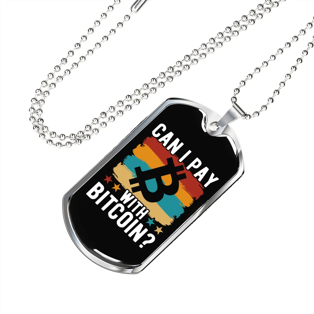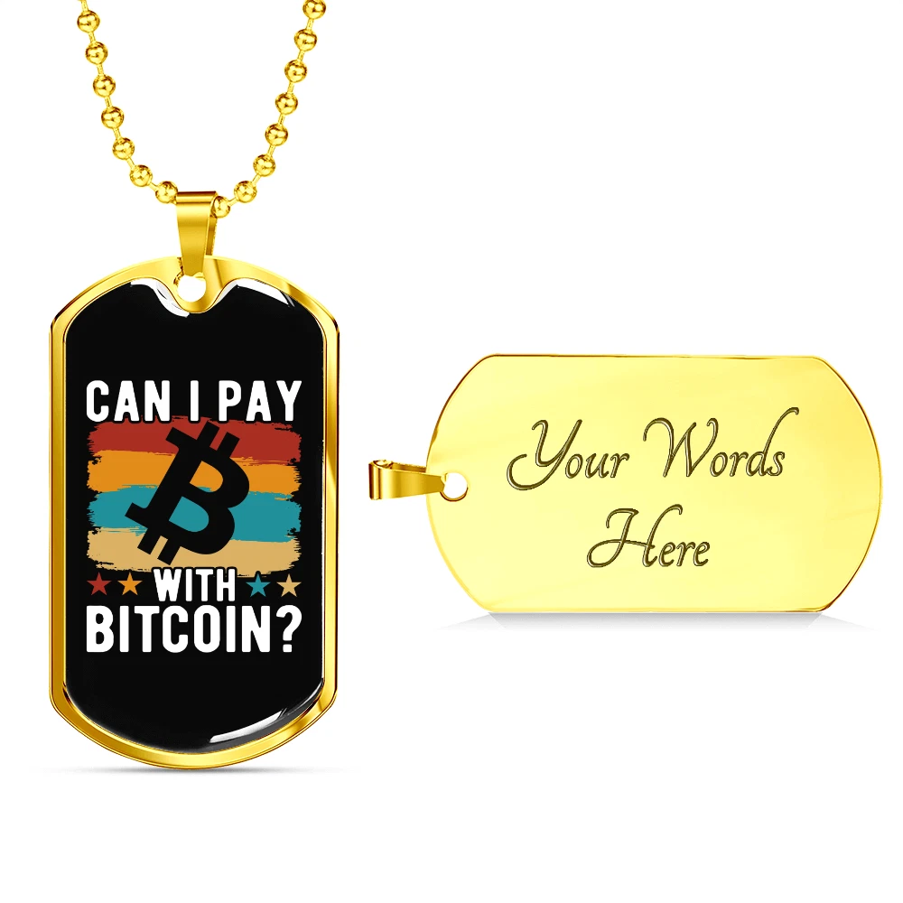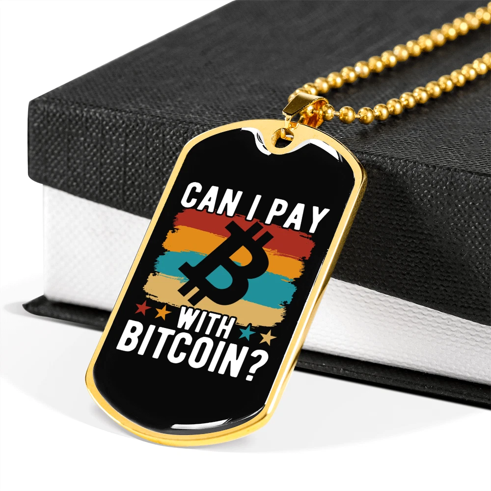 Pendant Shape: Dog Tag Theme: Bitcoin, Crypto, Blockchain Personalize: Yes Base Metal: Stainless Steel Type: Pendant Chain Type: Ball Color: Multi Color Brand: Express Your Love Gifts Features: Adjustable Pendant/Locket Type: Dog Tag Metal: Surgical Steel Main Stone: None Closure: Lobster Clasp Customized: Yes Necklace Length: 24" Material: Glass Country/Region of Manufacture: United States MPN: 6944317505624