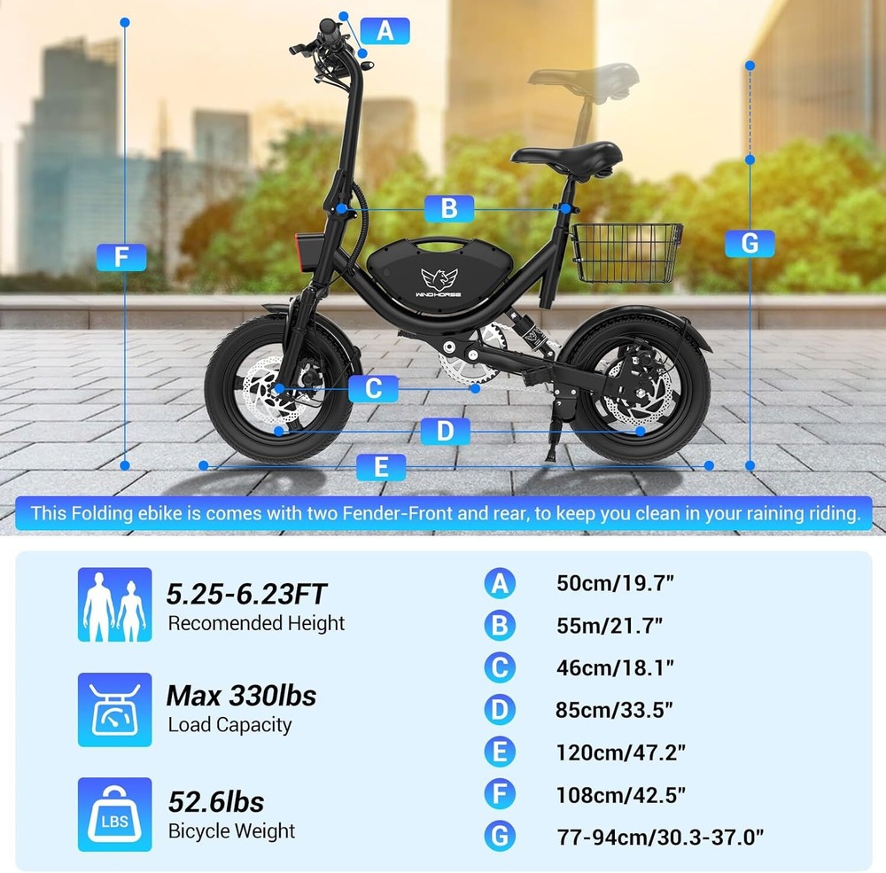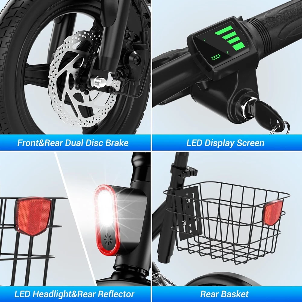 14in Folding Commuter Ebike with Basket 715W 22MPH for Adults