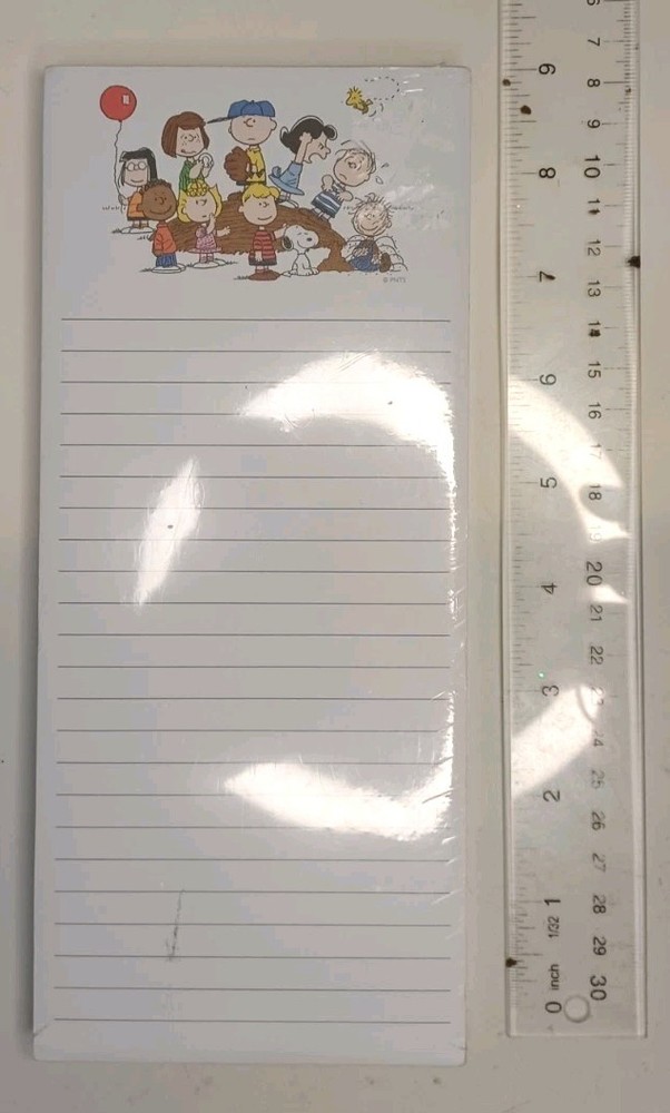The Graphique Peanuts Gang Magnetic Notepad is a stylish and functional office supply featuring a durable plastic cover. With a unit quantity of 1, this notepad is perfect for jotting down important notes and ideas while maintaining a fun and playful aesthetic with its Peanuts Gang design. Ideal for use in a variety of office settings, this notepad helps keep you organized and creative.Cover of plastic has wear. item new inside