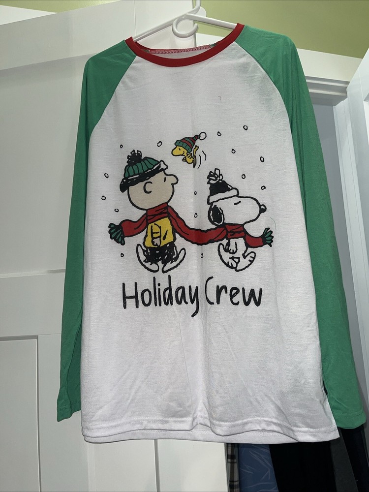 Peanuts Snoopy Charlie Brown “Holiday Crew” Long Sleeve 2 pc Mens Size Medium
