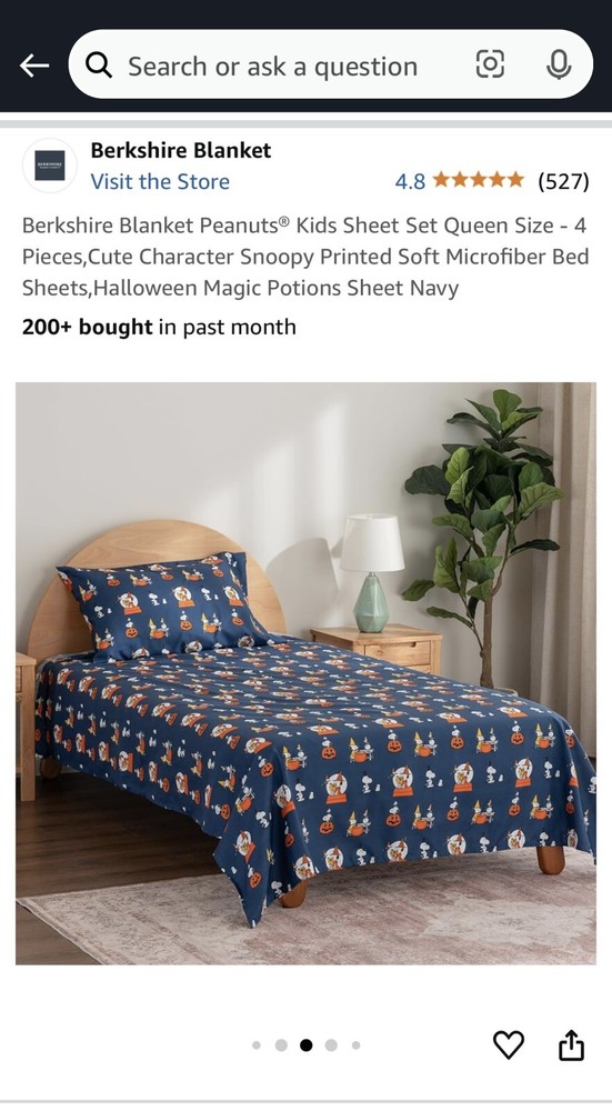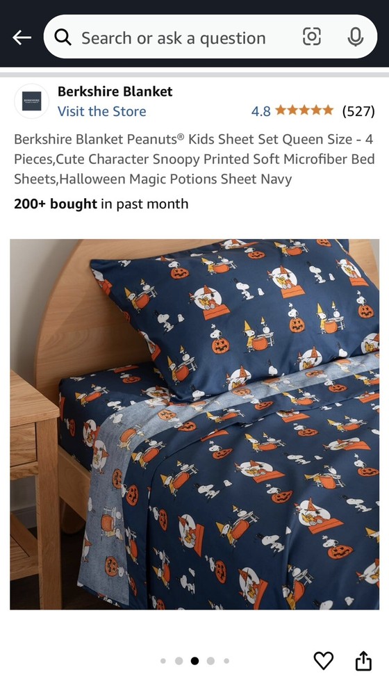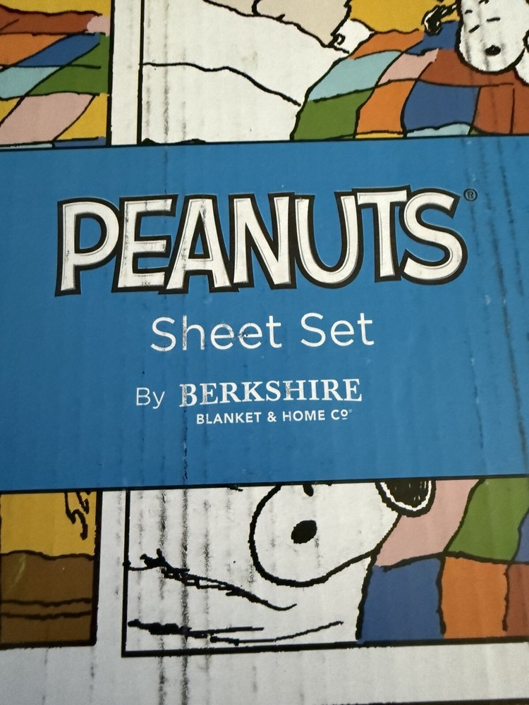This Queen Size Peanuts® Sheet Set features a charming Snoopy print, perfect for adding a touch of whimsy to any bedroom. Made by Berkshire Blanket, known for quality products, this 4-piece set includes a fitted sheet, flat sheet, and two pillowcases. The soft material ensures a comfortable night's sleep while showcasing your love for the Peanuts character family. The set weighs 2.65 pounds, making it easy to manage and maintain in your home. Perfect for Peanuts fans looking to bring a bit of playful character into their bedroom decor.