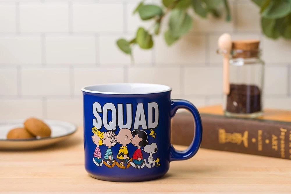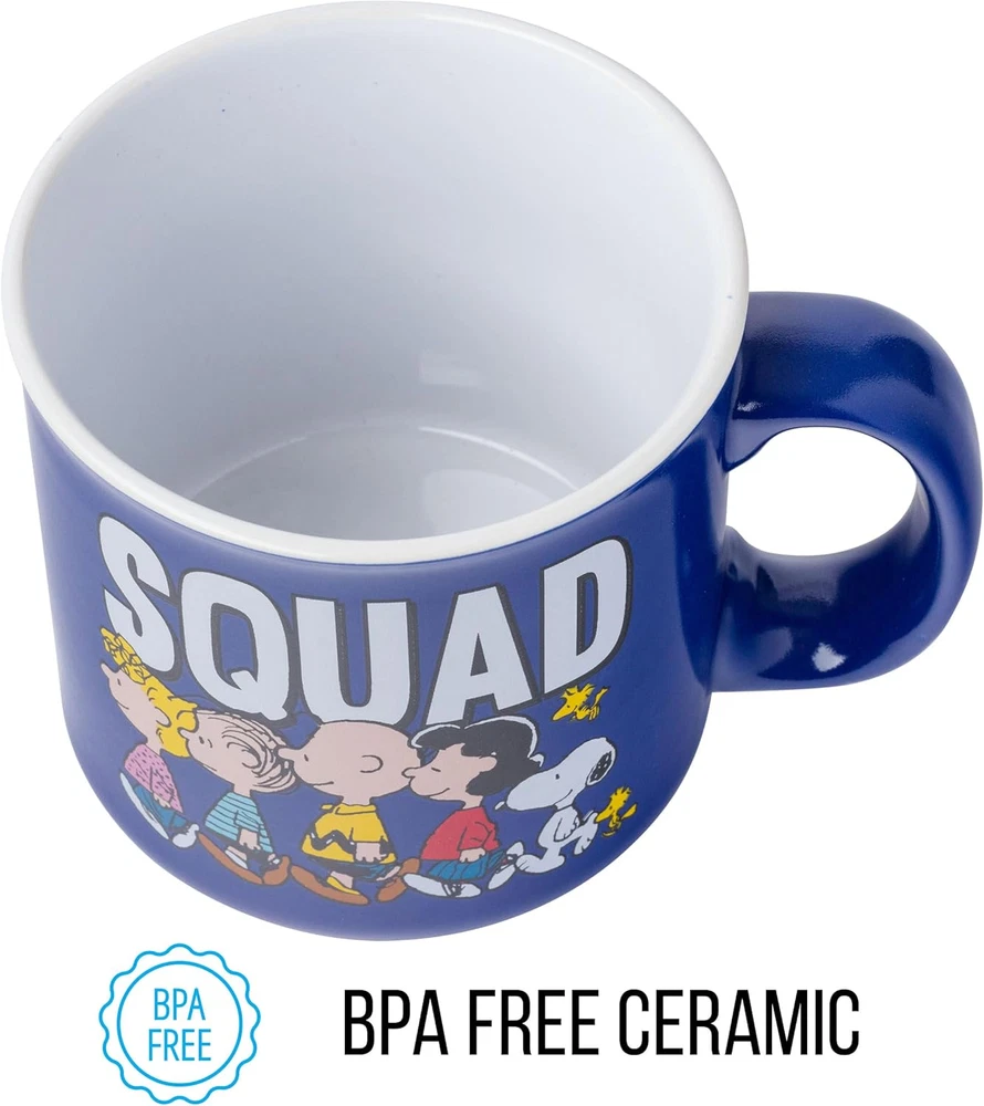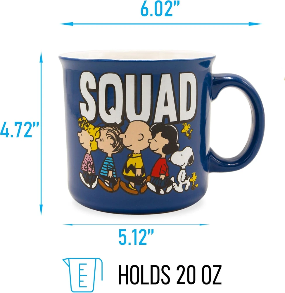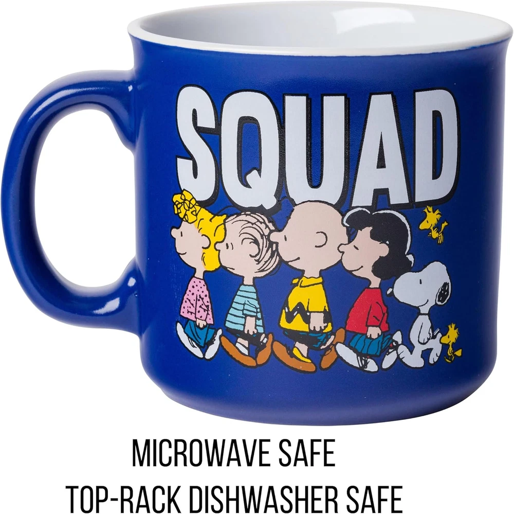 YOUR FAVORITE PEANUT’S CHARACTERS: Blue 20 oz mug pays homage to the Peanut’s crew. Featuring all your favorite characters: Charlie Brown, Snoopy, Sally Brown, Lucy, and more! FUN AND COLORFUL NOVELTY MUG: This mug is playful and colorful, featuring your favorite characters with the text ‘SQUAD’ across the front. INSTRUCTIONS FOR CARE: This BPA-free mug is NOT microwave or dishwasher safe. HAND WASH ONLY. GREAT GIFT FOR FRIENDS: This playful mug is the perfect birthday, Christmas or Housewarming gift for members of your “squad”. OFFICIAL MERCH: Have confidence knowing you are purchasing officially licensed Peanut products from Silver Buffalo. Find more from your favorite movies, series and characters. Celebrate your squad with this Peanuts mug. Dark blue mug features your favorite Peanut characters including Charlie Brown, Snoopy, Sally Brown, and more! It holds 20 oz of your favorite hot or cold beverage. This BPA-free mug is NOT microwave or dishwasher safe. HAND WASH ONLY. This playful and nostalgic mug makes the perfect Christmas, birthday or housewarming gift for Charlie Brown fans and Peanut lovers’ of all ages in your life. Silver Buffalo provides fans with their favorite official character merch. Working in collaboration with licensors and brands, Silver Buffalo develops unique, creative, and ground-breaking products with a devotion to detail and innovation. Silver Buffalo prides itself on manufacturing and distributing playful products that connect fans with their favorite cartoon characters, superheroes, movies, tv-series and more. Celebrate your fandom!