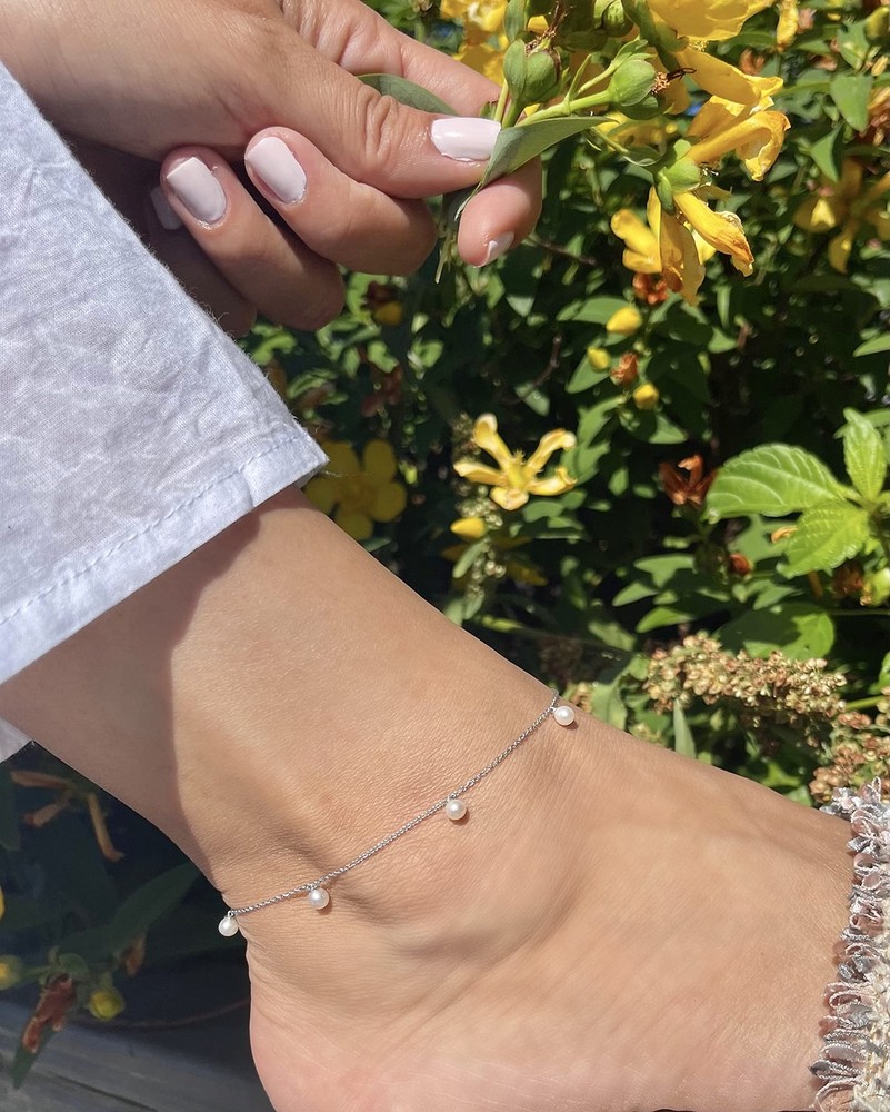 Sterling Silver and Cultured Freshwater White & Pink Pearl Adjustable Tin-cup Anklet (White, 4.0-4.5mm) THE PURITY OF PEARLS: This simply sophisticated satellite-style Anklet pairs perfectly with every outfit. Five genuine 4.0-4.5mm White round cultured pearls punctuate a delicate cable chain in real .925 sterling silver. A spring-ring clasp ensures a secure fit anywhere along with the 1" extender. This lustrous Tin Cup Anklet is the perfect way for a bride to everyday women or a working women. BEAUTIFUL MESMERIZING DESIGN: The Tiny Round Pearls of this anklet are sleek and modern yet classic and elegant in style which will add a luminous glow to your look. Symbolizing purity and transformation, shiny pearls have been coveted for millennia for their rare beauty and connection to exotic seas. This Freshwater Cultured Pearl design is fit for any occasion as daily wearing home, office and wedding. TOP QUALITY JEWELRY: At , we choose only the most Excellent Quality Cultured Pearls that are sustainably harvested by hand. Our hand-picked Shimmering Real Pearls Anklets are truly exceptional AAA+ quality and feature superior luster and uniformity. Wear our Elegant Gemstones lovingly handcrafted jewelry with pride. ELEGANT AND GRACEFUL: These Romantic White Pearls Metal Strand Anklet will ensure that you stand out effortlessly. Each jewelry piece is designed and made right in the heart of New York City, USA by artisans with decades of experience. The 8.5-10.5" adjustable Cable Chain Bead Anklet will become a part of your jewelry set and will enhance your jewelry collection. IDEAL GIFT FOR HER: This Gorgeous Pearls Anklet is perfect for a Valentine's, Anniversary, and Mother’s Day Gift. You can make your bride, bridesmaid, daughter, sister, fiancé, or wife’s Wedding Day, Christmas Day, Birthday, and Hannukah very special with this beautiful present. Each of our products is meticulously inspected and packaged with care to make sure you are getting the very best! We offer a No-Questions-Asked Money-Back Guarantee for 30 days after purchase.