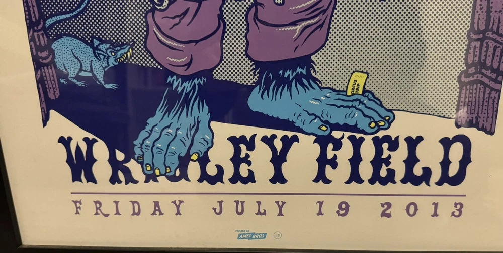 This beautifully framed 2013 Wrigley Field concert poster by Ames Brothers is a must-have for any music memorabilia collector or Pearl Jam fan! Dimensions of frame are roughly 28” x 20”