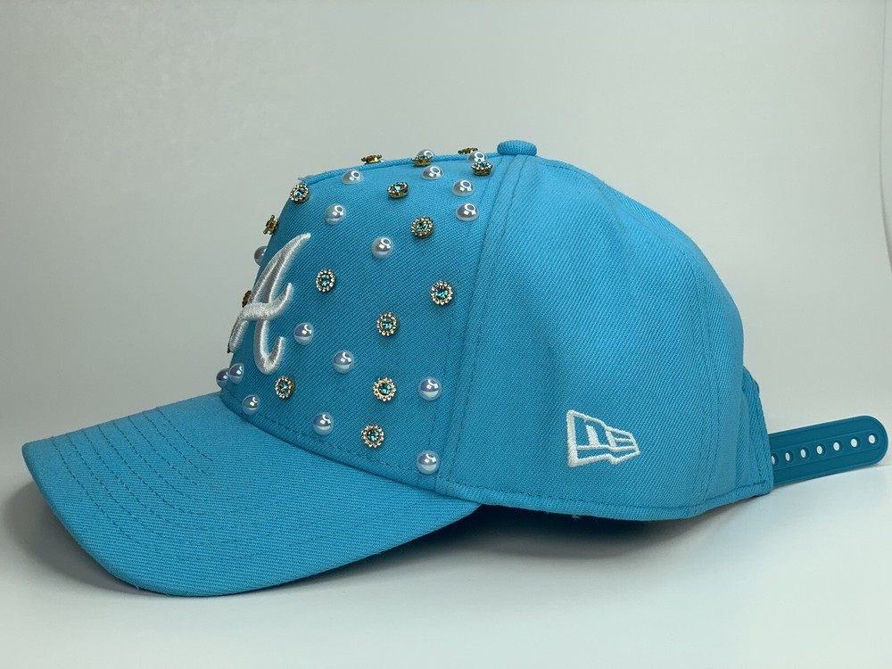 Show off your love for the Atlanta Braves with this stylish Pearly Rose New Era baseball cap. This custom snapback hat is perfect for any occasion, whether it's a casual day out or a formal event. The hat is made from a blend of polyester, wool, and acrylic materials, ensuring that it is both comfortable and durable. The solid blue color of the hat is perfect for any outfit, and the fitted design ensures a comfortable and secure fit. The hat features the iconic Atlanta Braves logo, making it a must-have for any fan of the team. Whether you're traveling, attending a wedding, or just going about your day, this hat is the perfect accessory to complete any outfit.