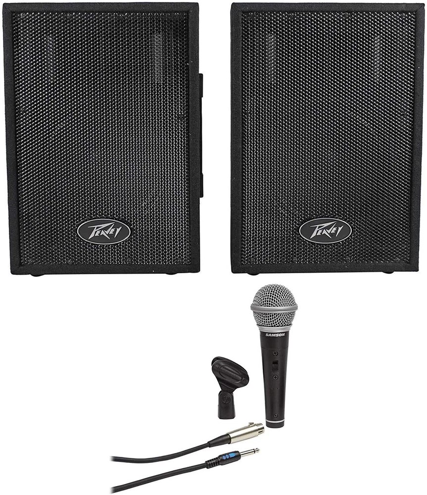 Peavey PVi10 (PAIR) 10" 100 Watt 2-Way Pro Audio Live Speakers+Samson Mic+Cable The PVi 10 is a two-way speaker system featuring a 10" woofer and a high frequency drive on an exponential horn. The lightweight-yet-rugged, carpet covered trapezoidal enclosure with top handle is ideal for live music, speech and music playback applications. A full length, black powder-coated steel grille provides driver protection and a professional appearance. The PVi 10 speaker system is rated at 50 watts program power handling. Its smooth response makes this system ideal for smaller venues where space is at a premium, and its two 1/4" input connectors keep amplifier hookup simple. Control-mount adaptor Side-position monitor 50 watts continuous, 100 watts program Two-way enclosure Horn-loaded high frequency driver 10" premium speaker Metal grille Carpet covered Weight Unpacked: 37.04 lb(16.8 kg) Weight Packed: 40.12 lb(18.2 kg) Width Packed: 20"(50.8 cm) Height Packed: 28.25"(71.755 cm) Depth Packed: 10.25"(26.035 cm) Samson 's R21S Dynamic Microphone brings great sound and versatility to a variety of vocal miking applications. Perfect for live vocal performances, presentations and more, the R21S is engineered to the finest detail to provide any performance with exceptional sound reproduction and accuracy. The heart of the R21S's performance stems from its shock mounted mic element. Offering high gain output and a low impedance design, the capsule also features a cardioid pickup pattern. This enables the R21S to pick up all the nuances of any performance with exceptional clarity and detail, while reducing feedback and unwanted signals. The R21S offers a frequency response of 80Hz–12kHz, which is ideal for vocal and presentation applications. Also equipped to withstand high sound pressure levels, the mic produces vocals that sound huge and crystal clear. This makes the R21S a versatile tool in recording settings as well. The R21S features a convenient On/Off switch, as well as an XLR to 1/4" mic cable. For added versatility, a mic clip is also included.