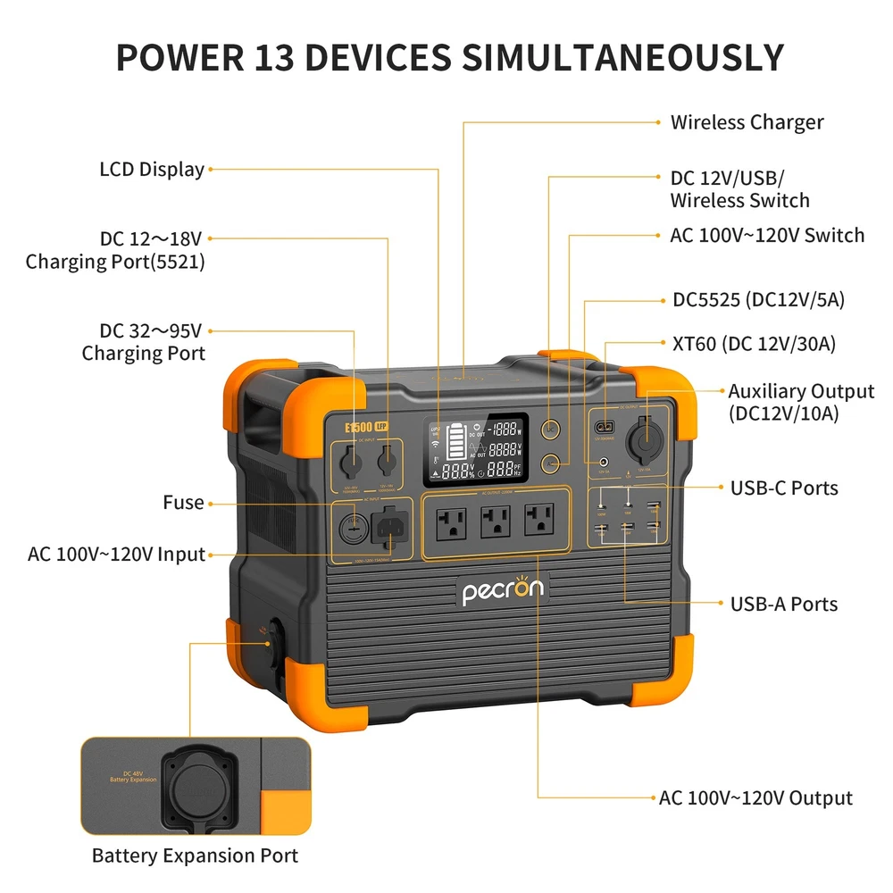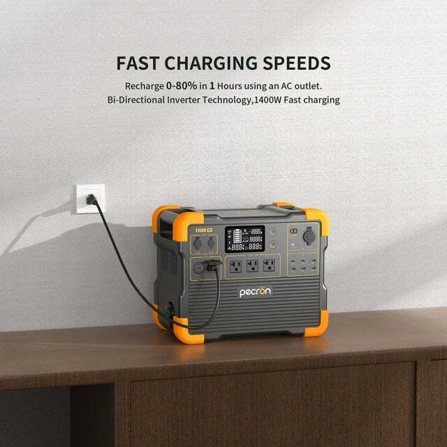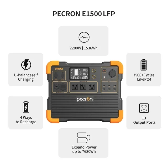Pecron E1500LFP has an excellent load capacity of 2200 watts, and has super fast charging. It can meet regular outdoor and home emergency use, and its compact design is very convenient to carry. You can use Wifi remote control the E1500LFP power station even when you are away at work! Key features include: liFePo4 Battery with 3,500+ Life Cycles to 80%, 1536Wh Large Capacity (Can Expandable up to 7680Wh), UPS Function, DC 30A(12V) Output, 2200W Bidirectional PSW Inverter(Surge 4400W), Integrated AC Charging Adapter(No Charging Brick Needed), 800W Max Solar Charging, 1400W AC Charging, 1.8 Hours Super Fast Charging, 13 Versatile Output, 15W Wireless Charger, PD 100W USB-C. Feature: FAST CHARGING: Up to 1400W AC Charging for an 80% charge in a speedy 0.9 hour, fully charged in 1.8 Hours.With solar panels, MAX 700W solar input, fully charger in 4.5 hours. POWER IT ALL: E1500LFP has 13 output ports that can run up to 13 devices at a time. Including 3x 2200W AC outlets, 6x USB ports up to PD 100W, 1x Cigar port, 1x DC ports, 1xXT60(12V/30A)and 1x 15W wireless charger,compatible with virtually all essential devices. MASSIVE CAPACITY: E1500LFP Power station With the 1536Wh, Max expandable to 7680Wh capacity (Used the EP3000-48V)2200W rated power(Surge 4400W), is a good backup battery used for home and outdoor activities, such as camping, tourism, fishing, emergency, etc. SAFETY & DURABLE: The ultra-safe LiFePO4 battery with Built-in BMS assures the self-protection of short circuits, overloads, and overheating. 120V Pure-sine wave inverter makes sure there is no damage to your sensitive electronic devices. WHAT YOU GET: pecron E1500LFP portable power station,Accessory Pack, AC Power Cord; Solar charging cable, Car Charger cable; User manual. Specification: Brand: PECRON Power: 2200W Capacity: 1536Wh(51.2V/30Ah) Battery Type: LiFePO4 (3500+ Cycles to 80%) Smart App Control: Bluetooth and WiFi Battery Expansion: Yes AC Input: 100Vac~120Vac/15A Max/1400W Solar Input: Voc 12V~18V/100W Max/7A Max;Voc 32V~95V/700W Max/15A Max Car Input: DC 12V~18V-100W Max AC Output: 100~120Vac/50/60Hz/2200Watts DC Output: 1x12V/30A;1x12V/10A;1x12V DC5525;2xUSB-C;4xUSB-A;1xWireless Charging Pad USB Output: 1x100W PD,5x18W Wireless Charging Pad: 15W Max. UPS Power: 100-120Vac/15A Max. Charging time: 1.5 Hours Charge Temperature: 0°C~45°C/32°F-113°F Discharge Temperature: -20°C~45°C/-4°F-113°F Weight: About 18KG/About 39.7lbs Dimensions: L377xW237xH305mm;L14.8xW9.3xH12in Package: 1*PECRON E1500 LFP power station 1*Solar charging cable(LSMC4-5GX16) 1*Car charging cable 1*AC charging cable 1*12V Alligator Clip 1*Accessory Pack 1*User manual Warranty Time: We would like to express our heartfelt gratitude for your unwavering support over the years. As a token of our appreciation, we are delighted to announce that the warranty for the E1500LFP has been extended to 5 years. How to Register the item and Get the Warranty? 1. Go to website: pecron.com 2. Click the "Support", and then choose"Warranty Registration" 3. Fill in the registration Form, and the submit Note: Please register your Pecron within 30 days of purchase to activate your extra 3-year warranty. (ONLY applicable to E1500LFP portable power station) Thank you once again for your continued trust and loyalty. Pecron Story Payment Shipping Feedback Contact us Pecron Story PECRON design, engineer, produce and sell products ourselves globally! Today, we have a wide range of battery-powered generators from 200W to 2,000W to satisfy the needs of a diverse group of customers such as campers, explorers, RV or boat owners, survivalists, disaster relief workers and etc. Payment 1.Money or Postal Orders / Personal Cheques / Cash payment are not accepted. 2.Payments are expected within 7 days after the final winning auction or place order. Note: Paying by eCheque through PayPal can delay your shipment by up to two weeks while payment clears through the PayPal system (check with PayPal on the expected completed date). Once your eCheque payment clears, your item will be dispatched within 48 hours. Shipping Shipping Information 1.Items would be shipped from Local US warehouse. 2.Usually takes 1-5 days by Fedex. 3.We despatch all orders in working business day. Weekends orders will be sent in next Monday morning. Hope get your understanding. (Saturdays, Sundays and public holidays- these do not count as business days) Feedback We will work try to help with your purchase, we sincerely hope that you could leave us a positive comment Green Color and 5-star(Yellow color)Detailed Seller Ratings ,We will automatically leave positive feedback after received positive feedback from you. If, for any reason you are not satisfied with your purchase, please contact us through "My Messages" or "Ask Seller Questions" before leaving neutral or negative feedback. PLEASE DO NOT leaves us 1, 2, 3 or 4-star Detailed Seller Ratings because they are equal to negative feedback. Please give us 5-star rating positive feedback, thanks in advance~ Contact us Welcome to Pecron Store 1.Pecron eBay official Shop, with Authoritative Quality and Resonable Price. Buy More Save More. 2.Welcome to wholesale and purchase,If you have any question ,Please contact us via ebay message. 3.We will reply you within 24 hours.(except weekends and holidays). Notes:Every day we get hundreds messages,if we reply you late,please wait patiently. We are so happy to answer you AS SOON AS POSSIBLE. Thank you! if any question in our service or products, please contact us first ,We are pleased to help you to solve problem.