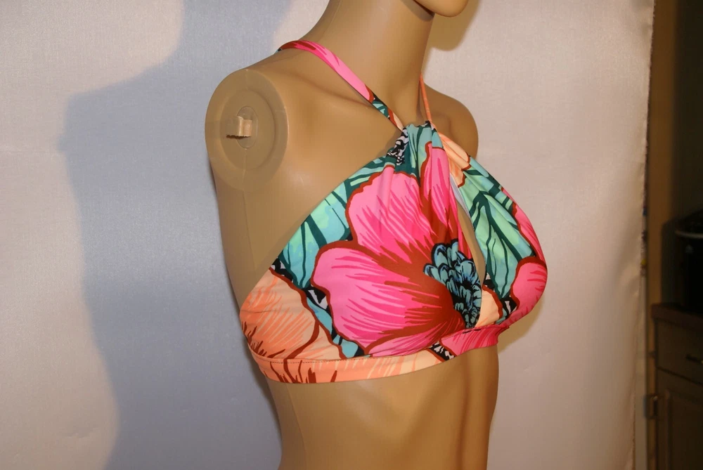 Material is same as pictured, cut of material positioned differently on swimsuit than in the picture. CLEAN WATER BIKINI TOP Brand New Size M Tropical Bright colors, Floral Print. Very Pretty! These colors will make you summer tan pop. This is a Clean Water Bikini Peek-a-Boo High Neck Top Tie in Back Adjustability. Sewn In, Slightly Padded Cups. Hand Wash Cold Separately Only Non-Chlorine Beach if needed Line Dry in the shade Do not Iron Do Not Dry Clean 88% Polyester 12% Elastane Lining is 100% Polyester Shipping I do offer combined shipping for multiple purchases, if safe to do so. I use eBay calculated shipping rates based on location, package weight and size.