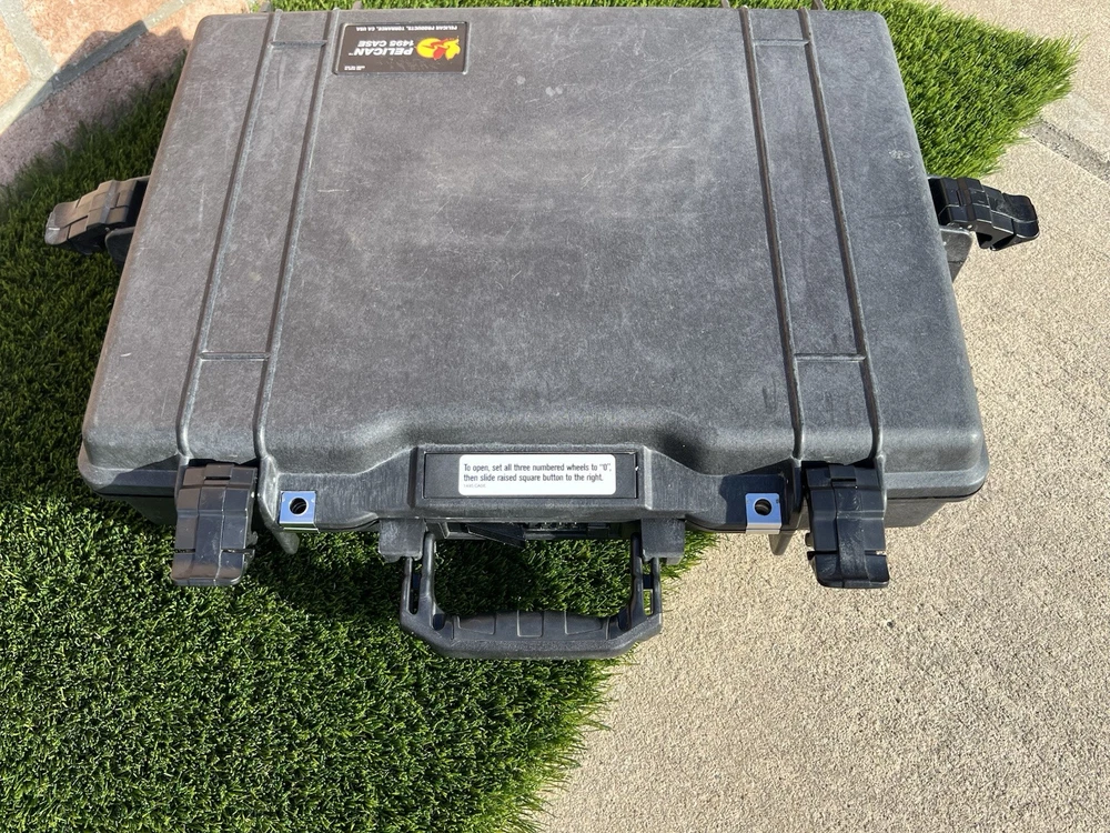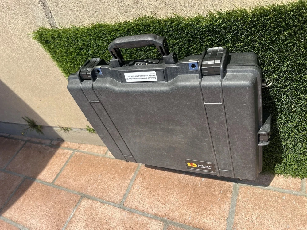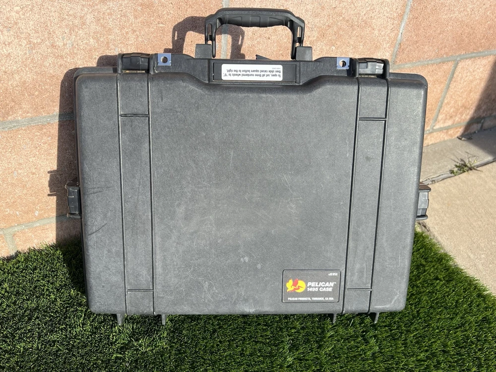 Pelican 1495 Laptop Case (Black) Waterproof Shockproof Hardcase W/ Foam Insert All are In great shape The outside has some light surface marks but the inside is immaculate. Some of the marks on each case may differ slightly but are all in the same shape. Comes with paper instructions on how to set the combo lock. All of the latches and locks function perfectly. Does not come with the original nylon shoulder strap. Ships out same or next day. Has original top and bottom foam but it is not glued so if u wanted to buy new phone and reconfigure it wont have the glue residue left behind. PREMIUM LAPTOP HARD CASE: Compatible with 17 inch laptops, MacBook Air, and select MacBook Pro models FEATURES: Watertight, crushproof, dustproof hard case design, customizable Pick N Pluck foam and convoluted lid foam. Includes 3 dial combination lock, padded shoulder strap, rubber over-mold handle, and O-Ring seal and pressure equalization valve DIMENSIONS (LxWxH Inches): Exterior 21.62 x 17.25 x 4.87 | Interior 18.87 x 13.12 x 3.81 - Weight 8.37 lbs MADE IN USA: Trusted protection in use by the military, divers, first responders (fire, police, EMT) since 1976 Fits up to 17" laptopF Watertight, crushproof, and dust proof Fold down over molded handle Automatic Pressure Equalization Valve