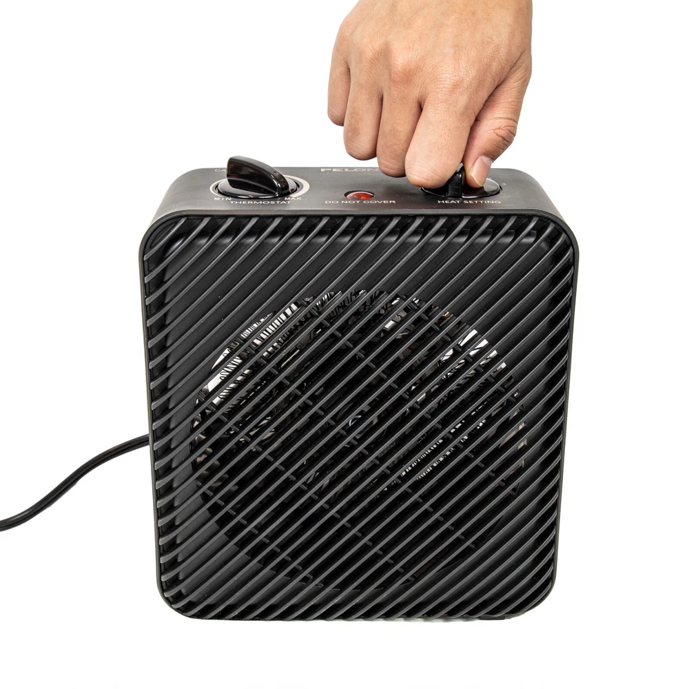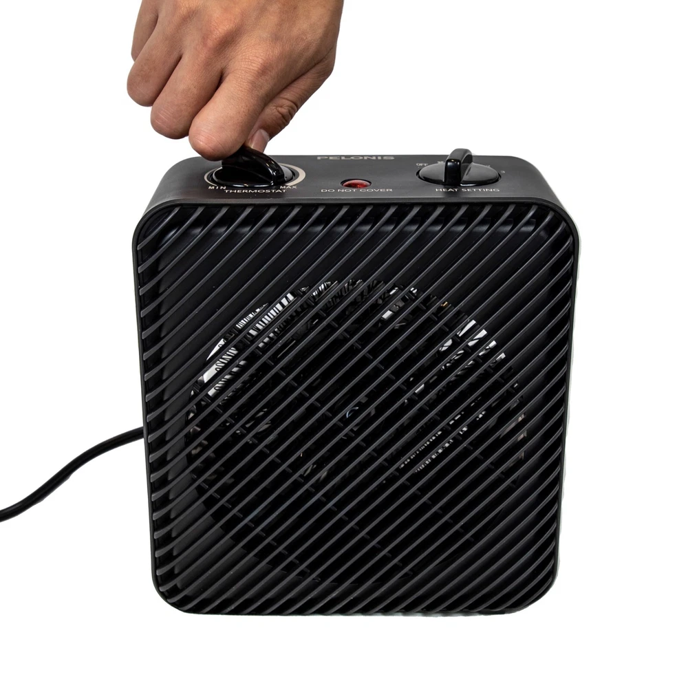 Product details Just because the weather outside is cold, does not mean you need to be cold too! With the Pelonis 1500W 3-Speed Electric Fan-Forced Space Heater, Black, New, PSH08F1ABB, you have three-adjustable fan speeds to warm up to 100 sq. ft. of space. Along with an adjustable thermostat, the white Pelonis 1500W 3-Speed Electric Fan-Forced Space Heater contains a safety tip over switch and fan only setting. This white Pelonis 1500W Electric Fan-Forced Heater has 4 power settings: Fan only (cool air), low heat, medium heat, and high heat. Designed with peace & quiet in mind -- you will be impressed by how quiet this Pelonis Electric Fan-Forced Heater is. Great for living rooms, office space and other small spaces in your home thanks to this heater's portability, designed for your convenience. This black Pelonis 1500W 3-Speed Electric Fan-Forced Space Heater is lightweight, making it easy to move from one room to another. The Pelonis 1500W Electric Fan-Forced Heater has a compact design that does not require a lot of room. The white Pelonis 1500W Electric Fan-Forced Heater works wonders for the miniature size that it is. Pelonis 1500W 3-Speed Electric Fan-Forced Indoor Space Heater, Black, New, PSH08F1ABB Power indicator light Safety tip over switch Air is warmed over coil elements and fanned into the room Lightweight & compact the added bonus of the cool-touch housing makes this heater portable and extremely easy to move Small and powerful – with 3-adjustable heater fan speeds; low heat, medium heat, & high heat All-season use with the Fan Only (cool air) mode Warms up to 100 Sq.ft Pelonis Power Type Electric Recommended Location Indoor BTU 5200 Watts 1500 W Recommended Use Camping Maximum Room Size 100 sq ft Assembled Product Weight 2 lb Manufacturer Part Number PSH08F1ABB Manufacturer Midea Color Black Assembled Product Dimensions (L x W x H) 4.33 x 8.15 x 9.53 Inches