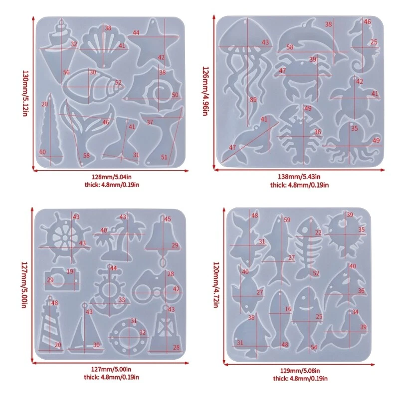 Features: Craft unique ocean themed earrings and pendants with our silicone molds. Our durable and flexible silicone molds are easy to use and can be reused multiple times for DIY projects. Suitable for individuals who enjoy crafting, have a passion for the sea, and seek accessories. Whether at home, in a studio, or during craft workshops, our molds are perfect for creating beautiful jewelry using resin dripping technique. Share your creativity and care by gifting one of a kind ocean inspired accessories made with our molds. Specifications: Material: Silicone Size: As Shown in the Pictures Package Includes: 1x Mold Or 4x Molds note: Please allow 1-2cm errors due to manual measurement. Please make sure you do not mind before you order. Due to the difference between different monitors, the picture may not reflect the actual color of the item.