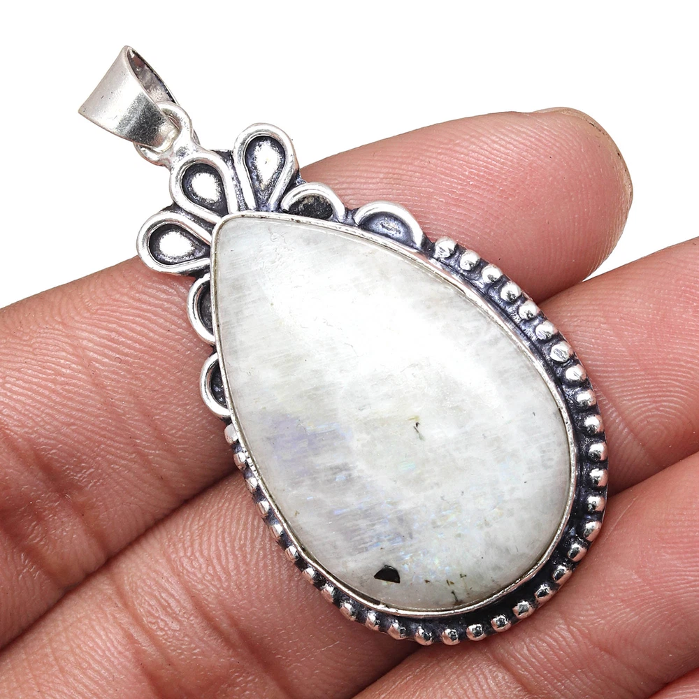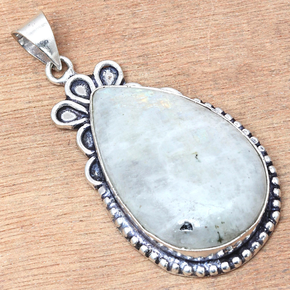 Pendant Moonstone Cabochon Gemstone Valentine'Day Ethnic Silver Jewelry 2"