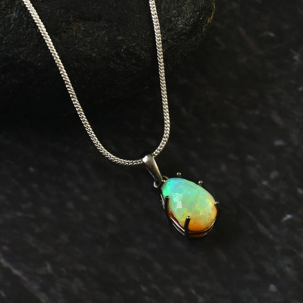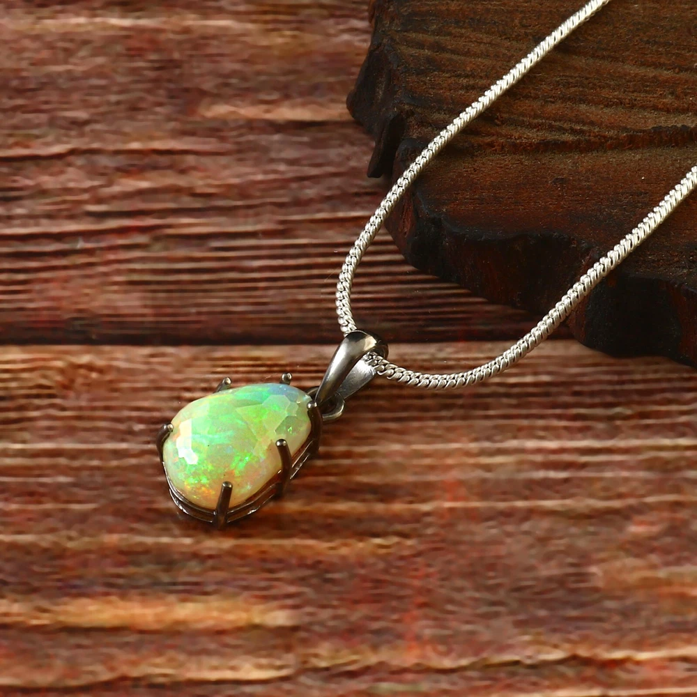 Pendant Opal Natural Silver 925 Sterling Gemstone Solid Jewelry Healing Fire 206