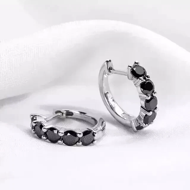 1.50Ct Round Black Moissanite Women's Hoop Huggie Earring 14K White Gold Plated Customization: Want to add your personal touch to this piece? Contact us and we will create one just for you. Most customization requests include: 1) Ring Resizing 2) Redesign 3) Metal Change (Silver/10K Gold / 14K Gold /18K Gold) 4) Metal Color Change (White/Yellow/Rose/Black) 5) Color Stones (White Topaz, Pink Sapphire, etc) 6) Engraving (Name or any message - no of characters subject to size of jewelry) 7) Anything under the sun that catches your fancy, we will give it a try :) Payment: We accept payment via PayPal only. You can also pay using your credit card, via paypal, by using paypal as a guest. Payment is required within 3 days of the sale of an item. Shipping: International shipments are usually delivered within 2 to 6 weeks, depending on the time taken to clear customs. We are not responsible for any delays due to customs. Please note that all countries charge a duty on imported goods. A customs clearing charge is also imposed in many countries. We are not responsible for the amount of duty or any other related charges. Terms & Sale: We want to ensure that you are completely satisfied with your purchase. If not, then please let us know before leaving any feedback and allow us to work with you to completely resolve any issues that you might be facing. You can return the item for a full refund LESS shipping, within 14 days of item(s) receipt date. There is no restocking fee. 100% Satisfaction Guaranteed. All returns must reach us within 14 days after the item was delivered to you the item must be in the original condition and with the original tags attached. Contact Us: You can contact us by clicking on 'ask seller a question'