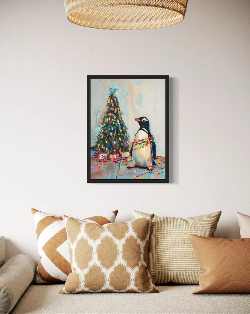Penguin Tangled Christmas Lights Art Print Poster MATERIAL: 230 gsm Matte Paper SIZE INFORMATION 11x14 in - 27x35 cm 16x20 in - 40x50 cm 18x24 in - 45x60 cm 24x36 in - 60x90 cm HAVE IT FRAMED (BLACK FRAME OPTION AVAILABLE) 11x14 in - 27x35 cm 16x20 in - 40x50 cm 18x24 in - 44x60 cm SHIPPING & HANDLING All your orders will be carefully packaged in a hard tube box or standard USPS box if you buy it framed. Your order will be shipped within 1-3 business days and comes with a tracking number. All orders are made and shipped in the USA. WHAT WE VALUE We take pride in all our artwork and make sure all our customers are happy with their purchases. So if you have any questions or issues, please do contact us! We will respond to any questions and are happy to resolve any problems you may have. 30 DAYS MONEY BACK GUARANTEED! If for any reason you are not happy with your purchase, please send it back for a FULL REFUND.