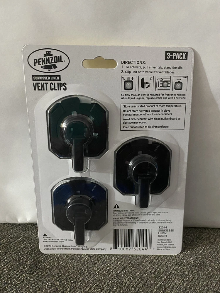๐ Description: Pennzoil Car Vent Clips 3 Pack - Sun kissed Linen Scent, Lasts 30 Days Each