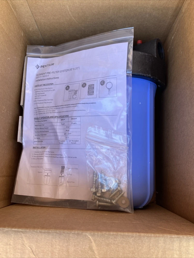 This includes: (1) Sediment filter housing (1) Mounting bracket (8) Bolt head screws (4) Washers (1) Filter cartridge ****Filter wrench not included**** This Pentair under-sink water filtration system is the perfect addition to any household. The carbon block filtration method ensures clean and fresh-tasting water for drinking or cooking. The blue color adds a pop of style to any kitchen or basement. The system is compatible with various models and is easy to install for those who may need a plumber. With the brand name Pentair, you can trust that this water filtration system will provide reliable and consistent performance. Enjoy clean and refreshing water with this BB10 model.