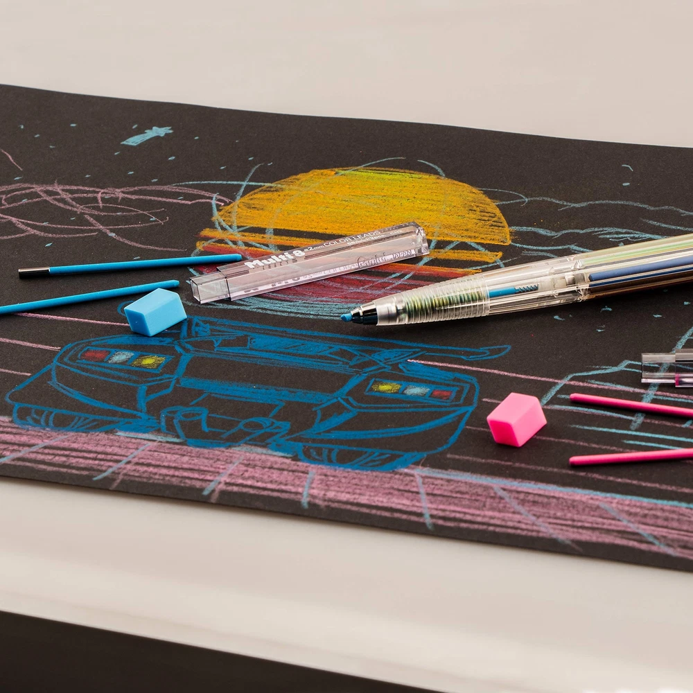 Eight bold colors in one amazing Pencil: Red, Blue, brown, orange, Yellow, light green, pink and light Blue. 2.0mm lead diameter produces bold lines of consistent density. Great for highlighting High cotton or linen Fiber paper such as bibles, encyclopedias and dictionaries. Refillable with Pentel CH2 lead. Ideal for highlighting and underlining High cotton, linen Fiber and lightweight papers such as, Bibles, encyclopedias, dictionaries, etc. Brightly colored leads are also great for sketching and designing Unique Pencil, with eight 2.0mm leads included, is all you need to complete an entire drawing anywhere you go Assorted clip colors: black, blue, orange and tangerine
