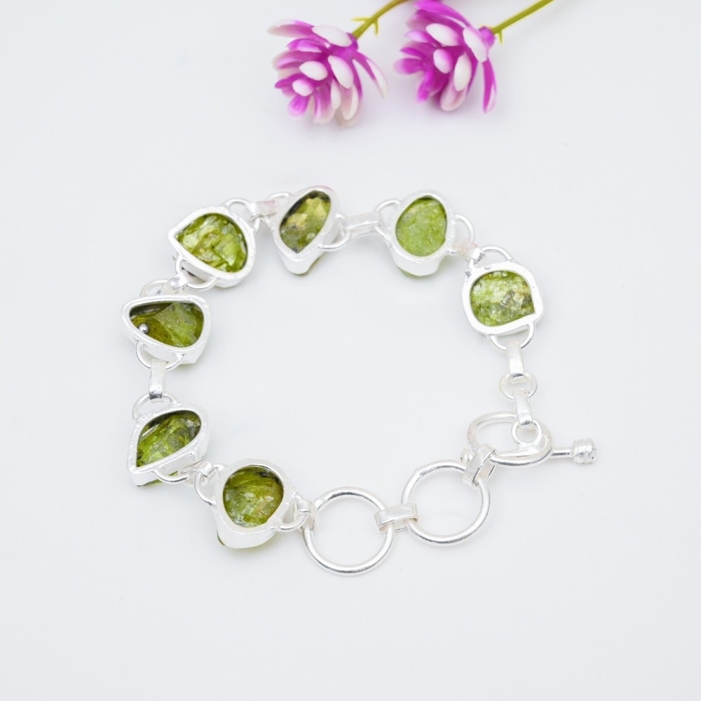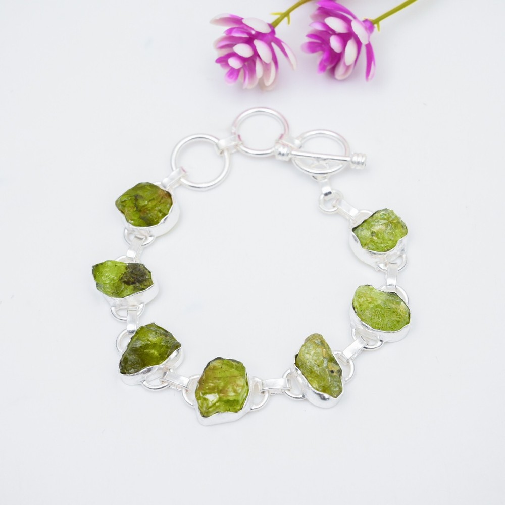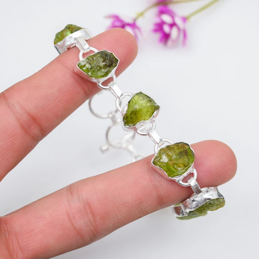 HomePeridot Raw Gemstone Bracelet in 925 Sterling Silver Handmade Jewelry Gift