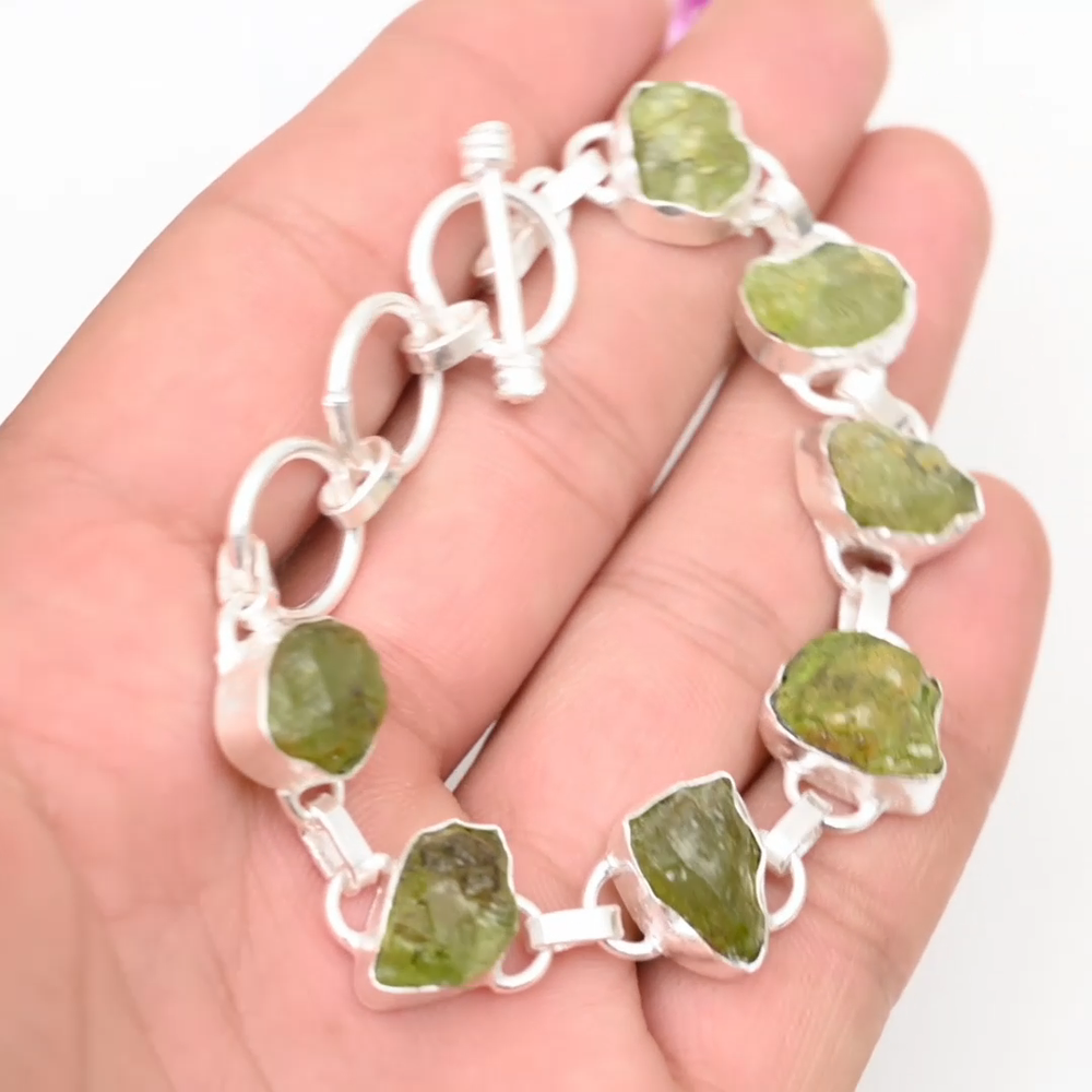 Peridot Raw Gemstone Bracelet in 925 Sterling Silver Handmade Jewelry Gift