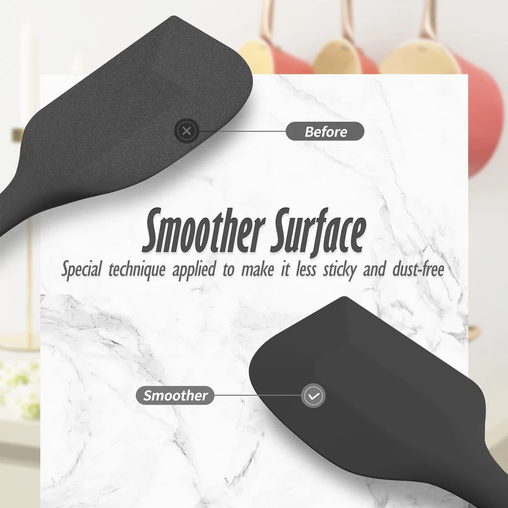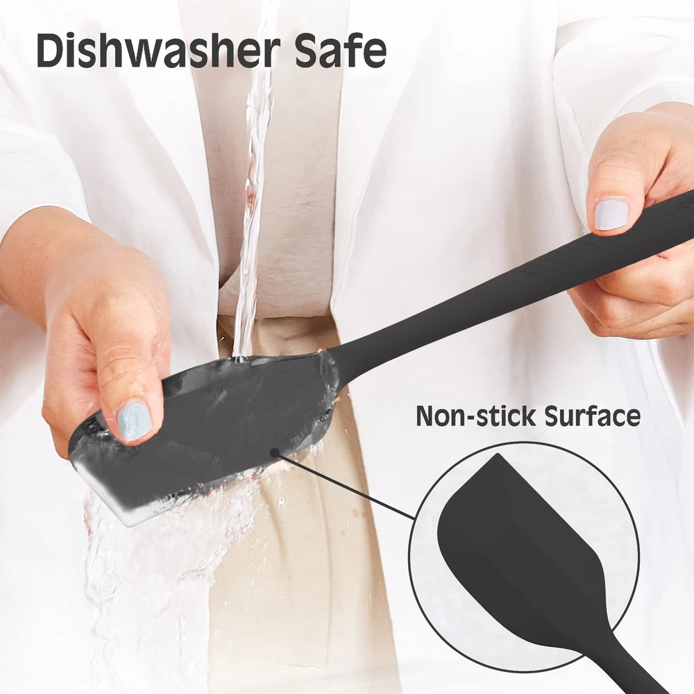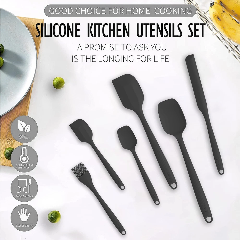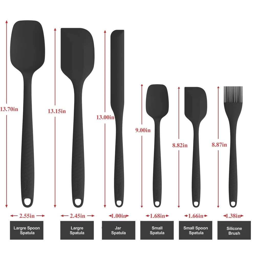 [ Quality] 100% made of food grade silicone rubber spatula set.Contains high-quality steel small metal spatula, strong and durable. tasteless kitchen safe. Smooth and flexible thin edge, no scratches, will not damage your pots and pans . [Seamless One-Piece Design] With easy-to-clean seamless one-piece design compact and sturdy, smooth surface cooking utensils for nonstick cookware, soft textured silicone grip better grip, than silicone spatula removable head more durable, hand wash or dishwasher.perfect for baking, cooking and mix etc. [Heat Resistant Utensils] Turn up the heat in your kitchen! with a solid stainless steel core and wrapped in kitchen silicone scraper that is heat-resistant up to 600° safe for nonstick spatulas for nonstick cookware. No melting, no warping, no worries! Quality Life. [Variety Pack] Our silicone cooking utensils set is versatile utensils ,Each package includes 1 jar spatula silicone long handle , 1 grill spatula brush,1 Large Spoon Spatula, 1 Small Spoon Spatula, 1 Large Spatula, and 1 Small Spatula.Versatile enough for use in frying pans, mixing bowls, sauce pots, grill, bottles, and more. [Permanent Warranty Service ] Our team will provide the longest after-sales service, If you have any questions about your silicone spatula set, you are ensured for "PERMANENT WARRANTY, GUARANTEED" without any questions asked.So you can enjoy your purchase with confidence knowing our service lasts forever.