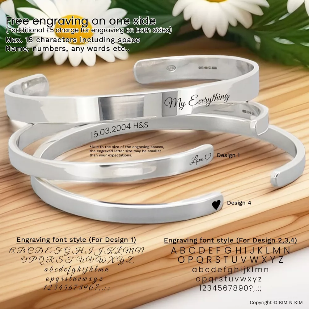 Personalised Bracelet Women✔️Love bracelet ✔️Womens bracelet✔️Heart bracelet This product data sheet is originally written in English. Kim n Kim Jewellery are suppliers of quality handcrafted 925 sterling silver jewellery. Our unique collection is an exciting blend of handmade classic, contemporary and designer silver jewellery at competitive prices. Since its launch in 2002, the site has grown into UK's online jewellery retailers Personalised 925 Sterling Silver Love Bangle Bracelet (Solid Inside) - Small-Medium & Large sizes available 🎁 Kim n Kim Gift Packaging Available - Click Here 🎁 Make it personal with Free Engraving on one side - Maximum 15 characters (including spaces) Please leave a note in checkout stating what character you would like. Please include any capital letters where you would like them as the text will be copied exactly as it has been provided. Please note that the more letters added may result in the text to decrease in size. **Customised bangle or bracelets cannot be returned unless faulty. Please ensure that the item is correct to your needs. Lifestyle Jewellery for men or women Plain Silver, Solid Quality Silver Jewellery Handmade Trendy design Made to Order PRODUCT INFO Brand or Name: Small-Medium Personalised 925 Sterling Silver Love Bangle Bracelet (Solid inside) Product Type : Bangle Gender : Women, Girls Metal : Silver Material Type : 925 Sterling Silver Gem Type : No Stone Length : 165mm / 6.5inch Diameter : 62mm by 55mm (Can be gently pulled open and closed to adjust for a better fit - Fits from 6.5" to 7.7" wrists.) Ball Diameter : 9mm / The ball design is a thick-walled hollow that is built to be strong, but silver (softer metals) can dent or crack under heavy impact. Thickness : 2mm / Solid Width : 4mm /6mm Weight : 12g ~13g / 13~14g Colour : Plain Silver Model Number : KIMBG0226SP Packaging : Official KimnKim Packaging Warranty : 30 days KimnKim Warranty Brand or Name: Large Personalised 925 Sterling Silver Love Bangle Bracelet (Solid inside) Product Type : Bangle Gender : Women, Girls Metal : Silver Material Type : 925 Sterling Silver Gem Type : No Stone Length : 180mm / 7inch Diameter : 70mm by 55mm (Can be gently pulled open and closed to adjust for a better fit - Fits from 7.5" to 9" wrists.) Ball Diameter : 9mm / The ball design is a thick-walled hollow that is built to be strong, but silver (softer metals) can dent or crack under heavy impact. Thickness : 2mm / Solid ID Width : 6.5mm Weight : 19g ~20g Colour : Plain Silver Model Number : KIMBG0219SP Packaging : Official KimnKim Packaging Warranty : 30 days KimnKim Warranty **All size and weight are approximate** BUY WITH CONFIDENCE - Authorised stockists of every brand on our store - Full manufacturer's guarantee - 19 Years in the Jewellery Retail - Before sending items are thoroughly checked, and further checked and photographed. - As a Store. All enquiries will be answered Monday-Saturday 10am-5pm. - All weights and measurements are approximate and may vary from the listed information. - Same day dispatch on all orders placed before 4pm on Mon-Fri. - All delivery time frames exclude Bank Holidays. - During busy sale or seasonal periods, there may be delays on processing orders. We recommend that you order ahead of time to avoid disappointment. - All orders shipped from the UK - Secure online credit card processing RETURN & EXCHANGE - Cancelling Your Order: You have 2 hours from ordering your item to cancel it. After that time we cannot guarantee that your order can be cancelled as it may already have begun production. If that is the case your order will be sent to you and a refund will not be provided. - Returns & Exchanges Policy: We are confident that you will be happy with your purchase but in the unfortunate event that you are not, we will do our very best to make it right. If the item you have ordered is defective, or you have simply changed your mind then, provided that it is in its original condition and not personalised(non-engraved), you can return it to us for prompt replacement or refund within 14 days of delivery. - Bespoke or Personalised Products: Unless there has been an error on our part, or the item you have purchased is defective or damaged, we cannot accept returns on 'personalised', 'bespoke' items or Pierced Products (such as earrings and body jewellery) It is vitally important that when you place your order for personalised products(Engraving) that you check all details, including dates, spelling, punctuation and grammar are correct and we will not be checked them. Certain items are excluded from the cooling off period guarantee, Unless there has been an error on our part, or the item you have purchased is defective or damaged, we cannot accept returns on 'personalised', 'bespoke' items or Pierced Products (such as earrings and body jewellery) We offer a full refund on goods that are returned to us within 14 days of dispatch. The goods must be returned unused, and in their original packaging. Please notify us by Our ebay support team . With your return, so that we can process your return as quickly as possible. If you wish to return an item; please use the return address stated on our address, and ensure that you pay the correct postage for the size and weight of the goods. We cannot accept responsibility for parcels returned to us that are lost in transit; therefore we strongly recommend at least the royal mail signed for service. The original delivery charge, if one was applied, will be refunded at the same time as the returned goods. Once we have assessed the items, We aim to do this within 14 working days of the receipt of the goods, and will notify you by email once this has been done. This returns policy does not affect your statutory rights. The Best Ways to Take Care of Sterling Silver Jewellery Reactions to sterling silver jewellery Some people may experience a blackening of the skin while wearing sterling silver jewellery. This may be caused by