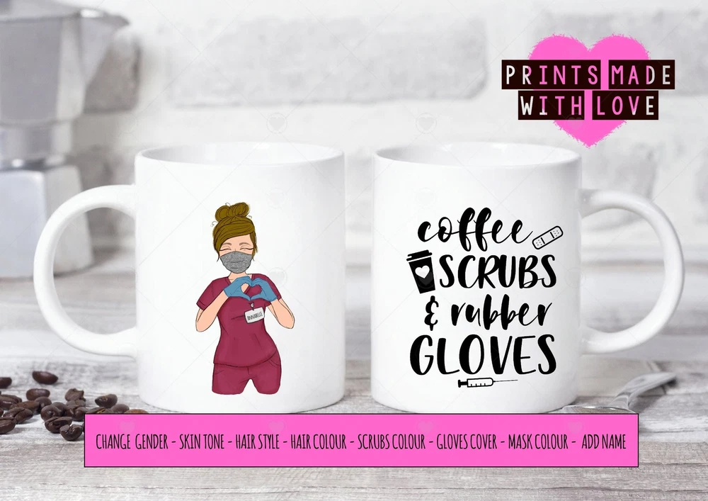 Personalised Nurse Gift Male Nurse Female Coffee Scrubs And Rubber Gloves Nurse Product Details.. This high quality 11oz. ceramic white mug has a premium hard coat that provides crisp and vibrant color reproduction sure to last for years. Perfect for all hot & cold beverages. The highest quality printing possible is used. It will never fade no matter how many times you wash it. Material: 100% Ceramic. Print both sides. Dishwasher and Microwave Safe. High Gloss + Premium White Finish. Printed in the U.S.A. Personalized & Custom. We support personalized and custom mug to add custom, when placing an order, you can add notes to the "order note" in shipping address section. Also you can contact us directly via message. Shipping Info. Ready to ship in 1 to 2 business days, All products are made-to-order and proudly printed in the United States. Shipped by USPS and DHL, You will receive your order in 5-7 days. Replace & Refund. All products are defective during shipping broken, chipped will be replaced free of charge. You are not satisfied with the product, we will refund 100% money to you. If any other issues arise, please do not hesitate to message, we would be more than happy to assist you.
