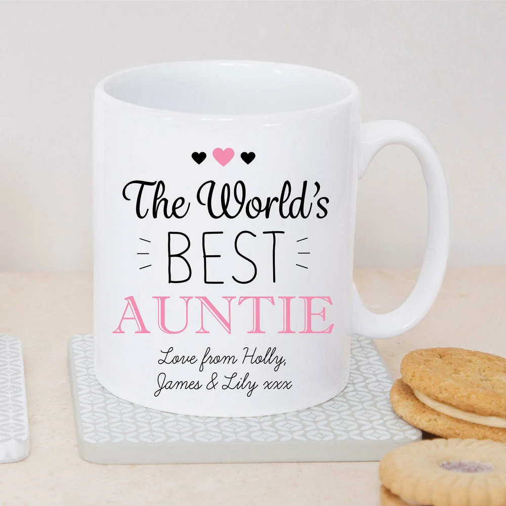 Personalised Sentimental World's Best Auntie Ceramic Mug Cup Auntie Gift Best Product Details.. This high quality 11oz. ceramic white mug has a premium hard coat that provides crisp and vibrant color reproduction sure to last for years. Perfect for all hot & cold beverages. The highest quality printing possible is used. It will never fade no matter how many times you wash it. Material: 100% Ceramic. Print both sides. Dishwasher and Microwave Safe. High Gloss + Premium White Finish. Printed in the U.S.A. Personalized & Custom. We support personalized and custom mug to add custom, when placing an order, you can add notes to the "order note" in shipping address section. Also you can contact us directly via message. Shipping Info. Ready to ship in 1 to 2 business days, All products are made-to-order and proudly printed in the United States. Shipped by USPS and DHL, You will receive your order in 5-7 days. Replace & Refund. All products are defective during shipping broken, chipped will be replaced free of charge. You are not satisfied with the product, we will refund 100% money to you. If any other issues arise, please do not hesitate to message, we would be more than happy to assist you.