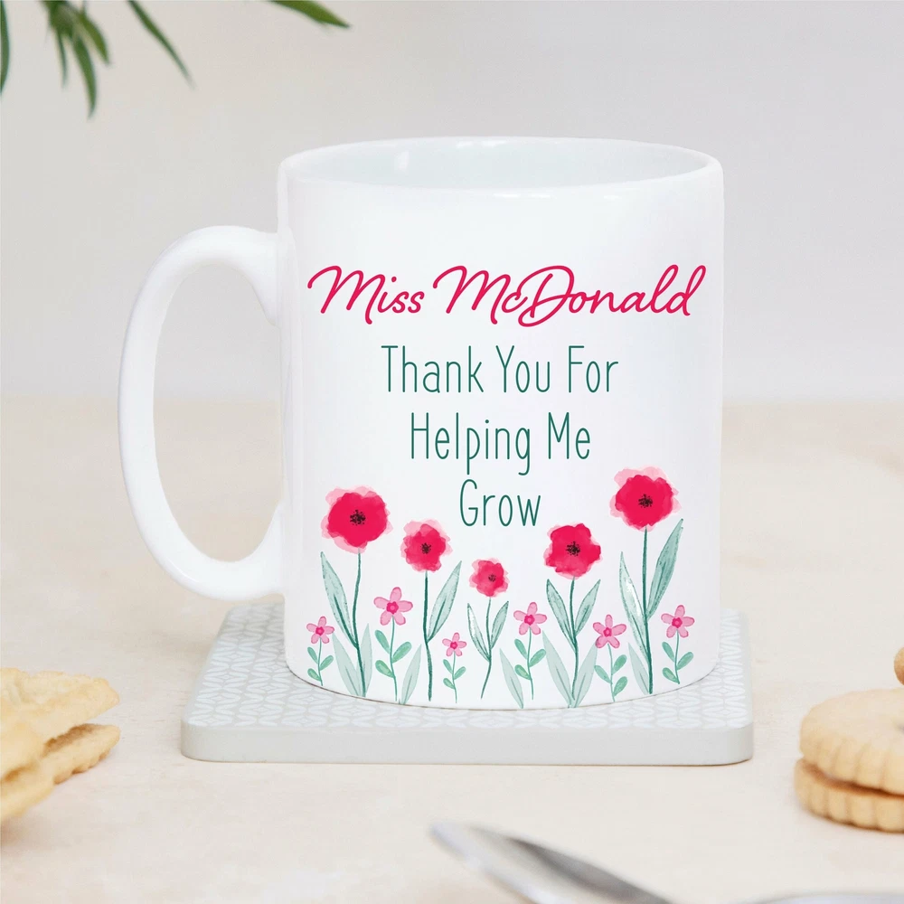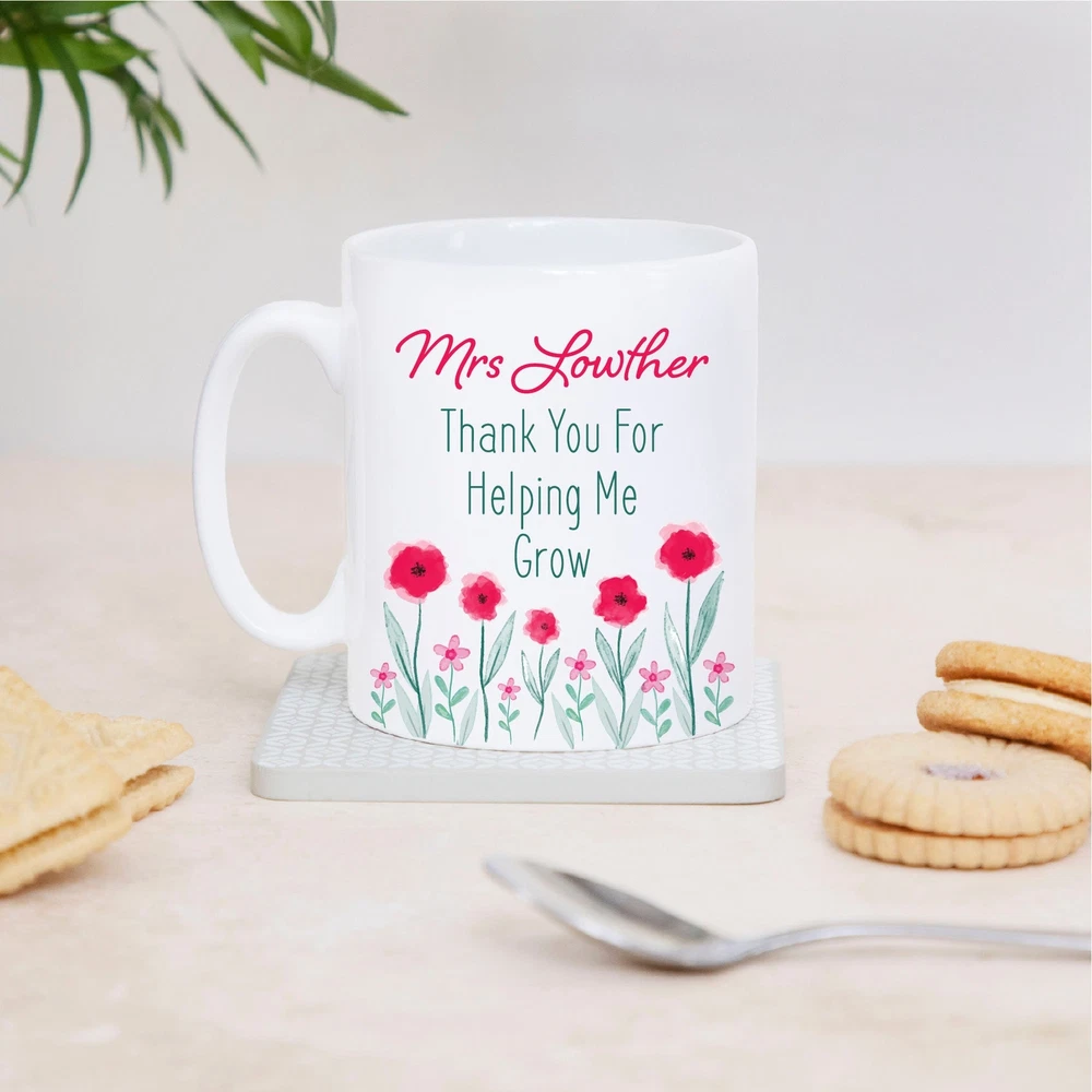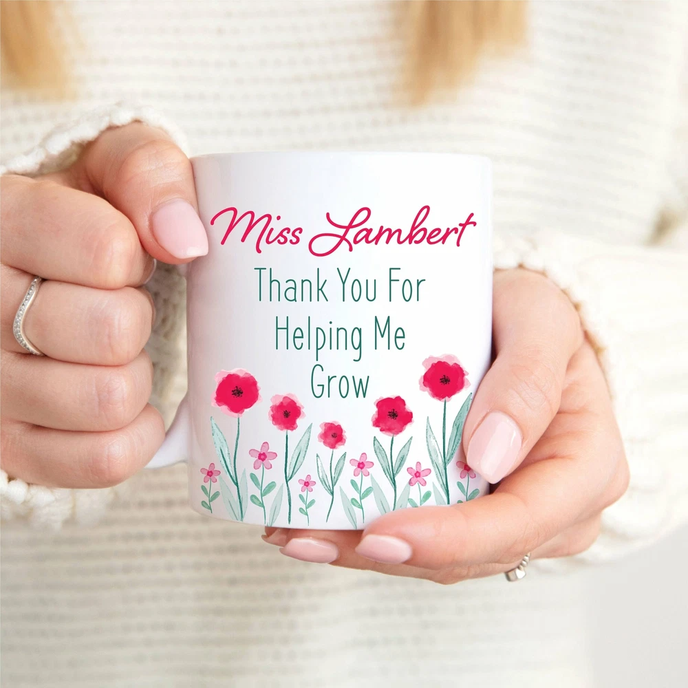 Personalised Teacher Thank You For Helping Me Grow Ceramic Mug Cup Teacher Gift Product Details.. This high quality 11oz. ceramic white mug has a premium hard coat that provides crisp and vibrant color reproduction sure to last for years. Perfect for all hot & cold beverages. The highest quality printing possible is used. It will never fade no matter how many times you wash it. Material: 100% Ceramic. Print both sides. Dishwasher and Microwave Safe. High Gloss + Premium White Finish. Printed in the U.S.A. Personalized & Custom. We support personalized and custom mug to add custom, when placing an order, you can add notes to the "order note" in shipping address section. Also you can contact us directly via message. Shipping Info. Ready to ship in 1 to 2 business days, All products are made-to-order and proudly printed in the United States. Shipped by USPS and DHL, You will receive your order in 5-7 days. Replace & Refund. All products are defective during shipping broken, chipped will be replaced free of charge. You are not satisfied with the product, we will refund 100% money to you. If any other issues arise, please do not hesitate to message, we would be more than happy to assist you.