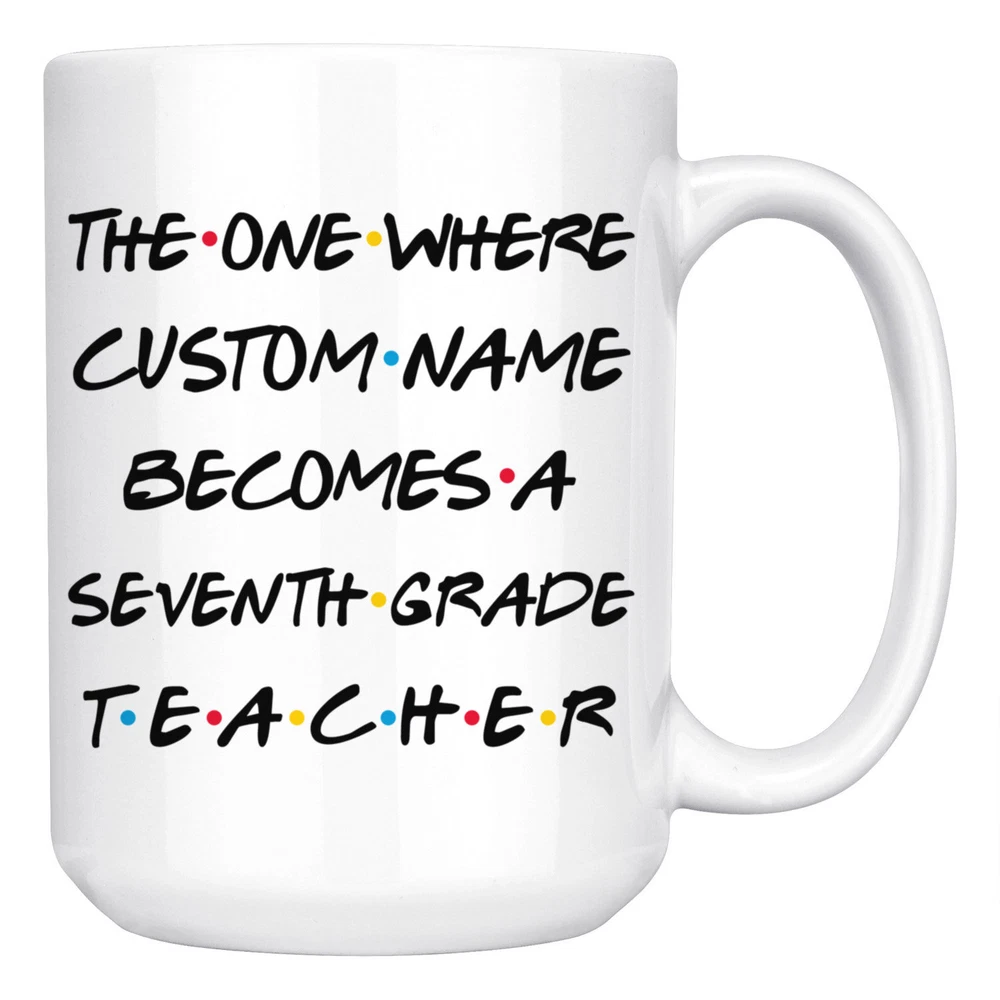 Personalized 7th Grade Teacher Mug Seventh Grade Teacher Graduation Present Product Details.. This high quality 11oz. ceramic white mug has a premium hard coat that provides crisp and vibrant color reproduction sure to last for years. Perfect for all hot & cold beverages. The highest quality printing possible is used. It will never fade no matter how many times you wash it. Material: 100% Ceramic. Print both sides. Dishwasher and Microwave Safe. High Gloss + Premium White Finish. Printed in the U.S.A. Personalized & Custom. We support personalized and custom mug to add custom, when placing an order, you can add notes to the "order note" in shipping address section. Also you can contact us directly via message. Shipping Info. Ready to ship in 1 to 2 business days, All products are made-to-order and proudly printed in the United States. Shipped by USPS and DHL, You will receive your order in 5-7 days. Replace & Refund. All products are defective during shipping broken, chipped will be replaced free of charge. You are not satisfied with the product, we will refund 100% money to you. If any other issues arise, please do not hesitate to message, we would be more than happy to assist you.