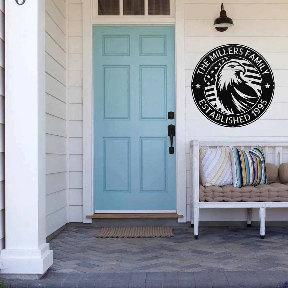 Product Description Personalized American Eagle Metal Sign Custom Name Home Decor Gift for Patriot Showcase your patriotism with our Personalized American Eagle Metal Sign . This stunning piece of art adds a bold statement to any space and makes for a thoughtful gift for family and friends. Crafted from 16 gauge high-quality metal , this sign is built to withstand the elements. The powder coating finish makes it dust, weather, and water resistant, ensuring it looks great indoors or outdoors. Key features include: Customizable Design: Personalize with names or special dates for a unique touch. Durable Construction: Made from sturdy metal to last for years. Perfect Gift: Ideal for Christmas, birthdays, holidays, or any special occasion. Versatile Decoration: Suitable for home, office, or outdoor display, enhancing any setting. Celebrate your love for country with the Personalized American Eagle Metal Sign . Order now and add a personal touch to your decor! Service and Color Choice Our metal signs are designed to be personalized just for you, making them the perfect addition to any space! The default color for our signs is Black , but we also offer a variety of beautiful options including Copper, Gold, White, and Silver . After placing your order, simply contact us with your preferred color choice, and we'll ensure your sign is exactly how you envision it. Let’s create something special together!