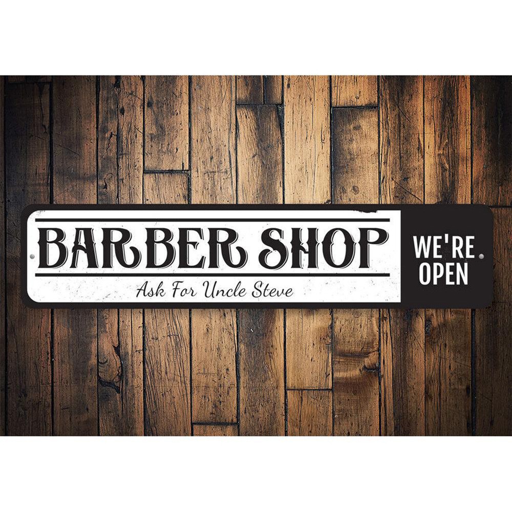 The Lizton Sign Shop Product Description Barber Shop Sign Personalized We're Open Custom Name Aluminum Metal Decor **there may be slight variations in color and text spacing, however your sign will be very similar to the image above. Quality Aluminum Street Signs Sign Information Aluminum Brand New Sign Comes with rounded corners and pre-drilled for easy hanging. We use the highest quality materials - 100% USA-made! Great Gift Idea - Our signs truly make a one of a kind gift. Personalize the sign with the text you want to add. Custom text for the sign can be sent to us via email. A BRAND NEW SIGN!! All of our street signs are made of premium materials. The sign itself is made of aluminum and will never rust providing years of enjoyment indoors and outdoors. No Cheap plastic!! The Lizton Sign Shop specializes in quality personalized custom aluminum signs for any occasion. These make the perfect sign for any man cave, office, basement, garage, college dorm, kids bedroom, game room, bar, pub, tavern or countless other places. *Colors may vary slightly from one computer screen to the next but the image should be very close. All content and designs are subject to copyright and may not be reproduced in any form. Payment Methods We would prefer payment to be made through paypal but we also accept all major credit cards. If you select the credit card option please contact us after you make your purchase and we can walk you through the steps to make a secure payment. Return Policies We will accept returns within 30 days of the purchase date. The buyer is responsible for any costs to return the item or items. Returns will only be accepted for items that were damaged in shipping or if we made an error in the manufacturing of your item, i.e. spelling error.