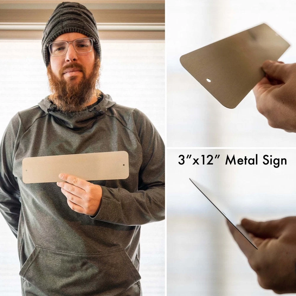 All metal signs ship via USPS - please make sure your address is correct :-) NOTE: All rustic add-ons including any rust, distressed marks, etc. are printed on and not real, so the signs are smooth to the touch. • We have multiple sizes available. To see our current sizes available, click the drop down menu for each style. • We highly recommend taking tape and measuring the spot you plan on placing the sign at to ensure you order the right size for your perfect spot! All signs are made to order custom just for you! • Background Color Options: White With Faux Rust (main text is black), White With Distressed Black Edge (main text is black and edge is distressed black), Distressed Black With Faux Rust (main text is white) and Distressed Black With NO Rust (main text is white). ***METAL SIGN FEATURES*** • Aluminum Metal Sign With Rounded Corners • Indoor or Outdoor Use • Two Hanging Options: 1. Ready To Hang – Two Pre-Drilled Holes Centered On The Shortest Sides Of The Sign As Shown In The Photo Slide Above (No Hardware Is Included). These holes can NOT be moved to a different location. Screws are NOT included due to the wide variety of material types the metal signs may be hung on. 2. No Holes – Command Strips Are Popular For Hanging Versus Nails • Thickness: 0.032 Inches - Perfect for thin light-weight art on the wall! There is a picture in the slide show that shows the thickness as well. • Gloss Print - Increased Vibrancy Of Artwork • All metal signs ship in 1 to 3 business days. • Colors can vary a bit on different monitors and screens. Any props included in photos are not included. Please be sure to double-check your address to make sure it is accurate for USPS delivery. If a package is returned to us due to an invalid address, the buyer is responsible for all additional shipping charges. We have chosen aluminum metal versus other types of metal due to it not rusting. As anything in sunlight, the signs can fade over time.