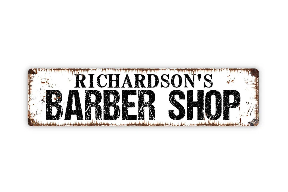 Personalized Barber Shop Sign, Custom Metal Sign, Rustic Street Sign or Door
