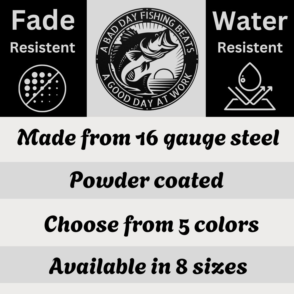 Product Description Bring the spirit of the lake to your home, cabin, or man cave with this Personalized Bass Fishing Metal Art Sign . Designed for anglers and outdoor lovers, this custom wall décor adds rustic charm and personal style to any fishing space, garage, patio, or lodge. ✨ Expert Craftsmanship Every sign is precision laser-cut from premium 16-gauge steel and finished with a durable powder coating that resists rust, fading, and weather damage. Perfect for indoor or outdoor display year-round. 🌿 Key Features: Fully Personalized: Add your name or custom text for a unique touch Heavy-Duty Steel: Long-lasting, high-quality craftsmanship Lake & Cabin Decor: Ideal for fishing rooms, cabins, docks, garages, and patios Multiple Sizes: 8” to 30” (custom sizes available) Easy to Hang: Pre-drilled holes included Color Options: Black, silver, gold, or white finishes 🎁 Perfect Gift for Anglers A great gift for fishermen, dads, grandpas, outdoor enthusiasts, birthdays, Father’s Day, and cabin owners . 💫 Bring Your Fishing Passion to Life Add a personal touch to any space with this Custom Bass Fishing Metal Wall Art , the perfect décor for anyone who loves the water, the outdoors, and the thrill of the catch. Service and Color Choice My metal signs are designed to be personalized just for you, making them the perfect addition to any space! The default color is Black , but I also offer a variety of beautiful options including Copper, Gold, White, and Silver . After placing your order, simply contact me with your preferred color choice, and I'll ensure your sign is exactly how you envision it. Let’s create something special together! 📏 How Metal Signs Are Measured Metal signs are measured from the widest point to the opposite widest point of the design. The listed size (8”, 10”, 12”, 18”, 24”, 30”, 36”, etc.) always refers to the longest edge of the artwork, not the height only and not the width only. Because every design has its own shape and proportions, the other dimension (height or width) will adjust automatically . 🛠 Example (30-Inch Size) When selecting a 30-inch sign , the longest side of the design will measure 30 inches . If the design is wider than it is tall: Width = 30 inches Height adjusts proportionally (often around 18–22 inches depending on the design) If the design is taller than it is wide: Height = 30 inches Width adjusts proportionally This ensures the sign keeps its correct proportions and the original shape, no matter which size is selected. 🎨 Custom Designs & Logos Welcome Have a special idea in mind? I can make it happen! Whether you need a business logo , family emblem , pet silhouette , or a one-of-a-kind design , I can create it from scratch and turn it into a high-quality metal sign. You can send your concept, sketch, or photo, and I’ll handle the custom design, editing, and production from start to finish. Your vision becomes real metal artwork made exactly the way you want it. ✨ Custom Any Design: If you have a special idea in mind, I can turn it into a metal sign, just message me! 📦 Ordering & Gift-Ready Each sign is crafted to order with great care and attention to detail. Your piece arrives ready to hang , making it easy to display or give as a thoughtful gift. Whether it's for your home or for someone special, every sign is made to impress and last for years. 💖 Your support means the world to me and my family. Thank you for helping keep this small art business growing. 🚚 Production & Shipping Every sign is made to order with a fast turnaround time. Production Time: 1–2 business days Free Shipping: UPS Ground (estimated 2–5 business days ) Expedited Shipping: FedEx 2-Day Delivery available at checkout Shipping Location: All orders ship from Indiana, USA Each order is packed securely to ensure your metal sign arrives safely and ready to display.