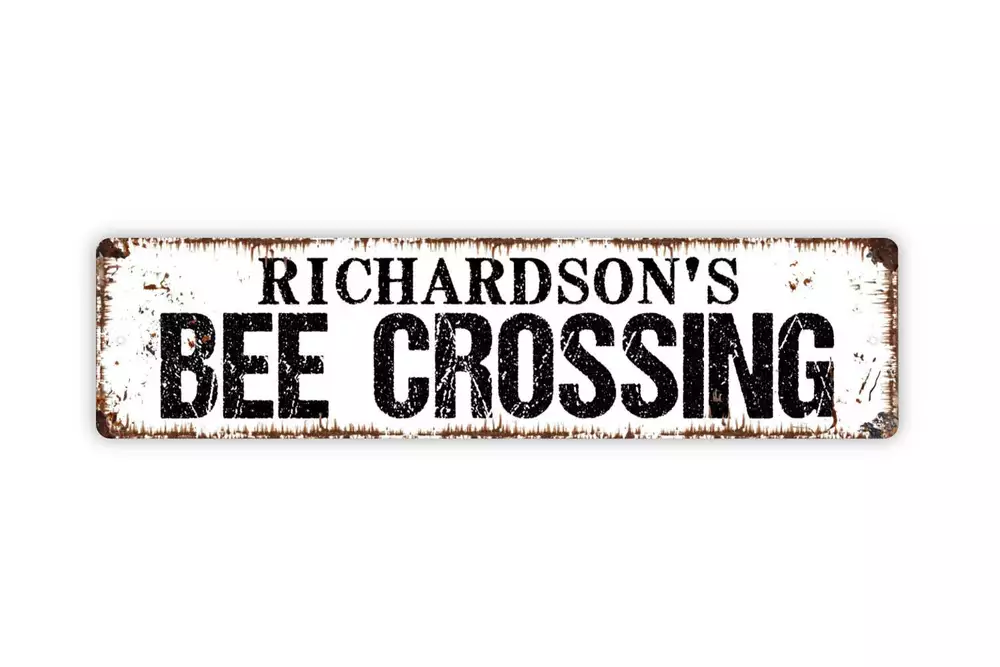 Personalized Bee Crossing Sign - Custom Metal Sign, Rustic Street Sign or Door